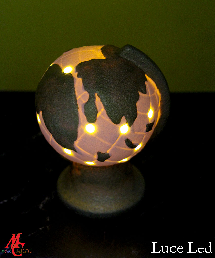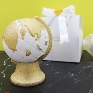 Eleganza raffinata e simbolismo si fondono in questa esclusiva bomboniera a forma di mappamondo, realizzata in porcellana con finitura oro e luce LED integrata. Con le sue dimensioni compatte (8x7xh.10 cm), è ideale per celebrare ogni tipo di evento: dal matrimonio alla laurea, dalla comunione al battesimo.