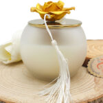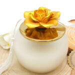 Le candele profumate sono simboli di calore e amore, rendendo questa bomboniera un dono prezioso per i tuoi invitati. Grazie alla sua decorazione floreale in porcellana oro, si adatta perfettamente a eventi di classe come matrimoni, anniversari, battesimi e comunioni.