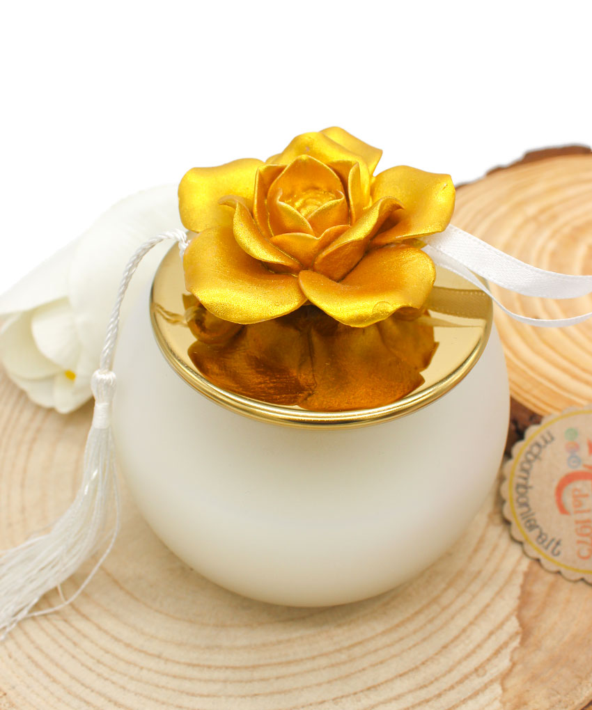 Bomboniera Candela con Contenitore Sferico e Fiore in Porcellana Oro ✨