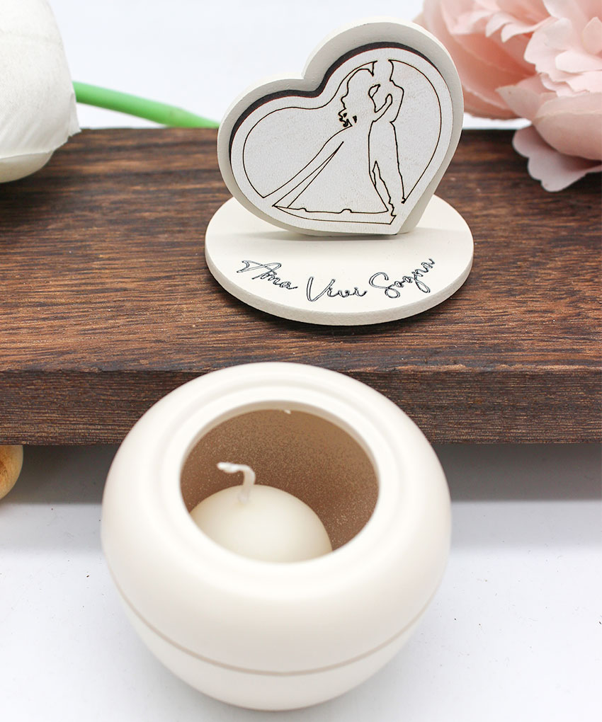 Bomboniera Matrimonio Economica – Scatolina Ovale Portacandela con Simbolo Sposi