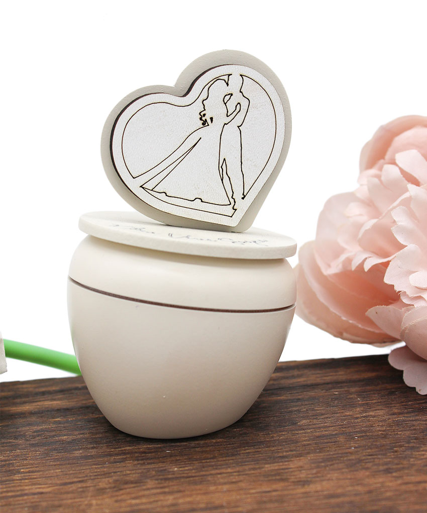 Cerchi un’idea originale e romantica per il tuo matrimonio? La scatolina ovale portacandela con simbolo degli sposi è una bomboniera economica ma dal forte valore simbolico. Un piccolo dono che parla d’amore, perfetto per ringraziare i tuoi ospiti con un ricordo elegante e utile.