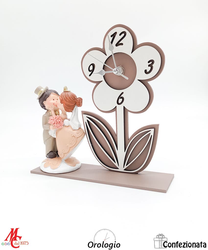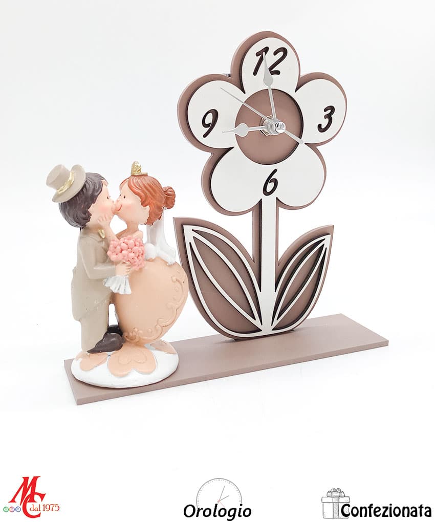 Bomboniera Orologio da Tavolo Coppia Sposi Tortora | Regalo Elegante per Matrimonio