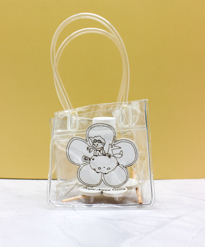 Mini profumatore Piccolo Principe colore sabbia completo di profumazione e bacchetta diffusore. Bomboniera elegante 6 × 6 cm.