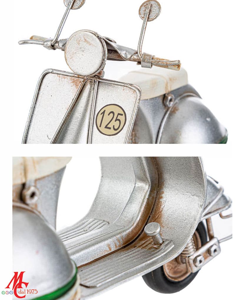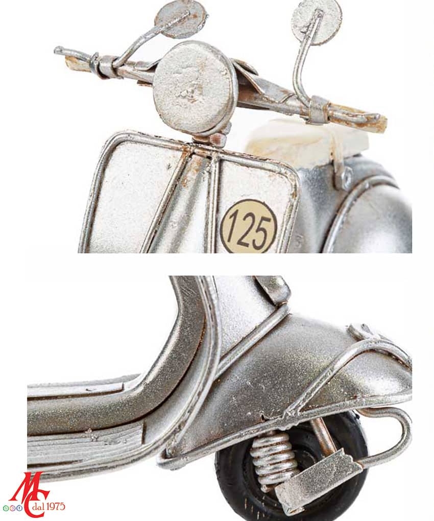 Bomboniera Moto 125 in Metallo Argento – Materiale Metallo – Disponibile in Due Misure: Piccolo (11x5xh.7,5 cm) / Grande (17x7xh.11 cm) – Confezione Non Inclusa