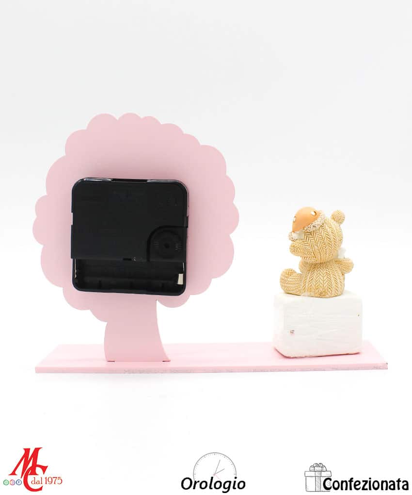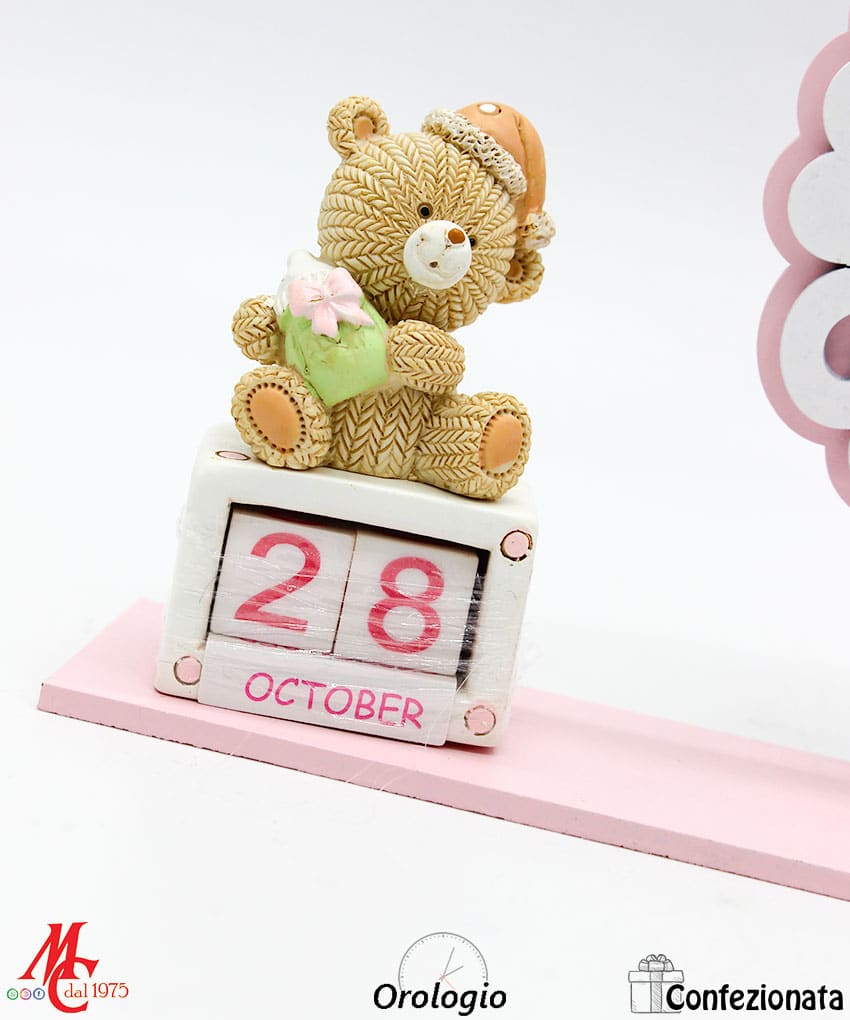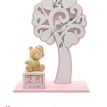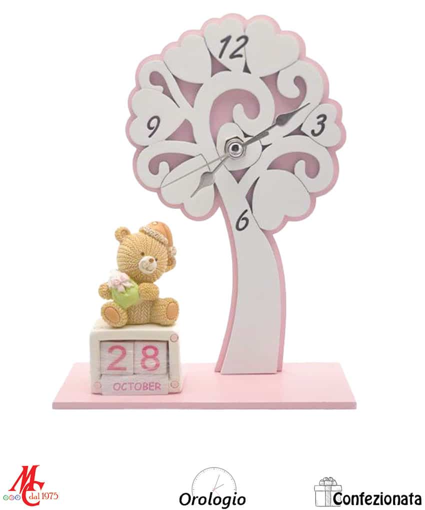 Bomboniera Orologio Albero della Vita con Calendario Perpetuo con Orsetto Rosa