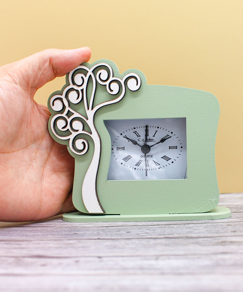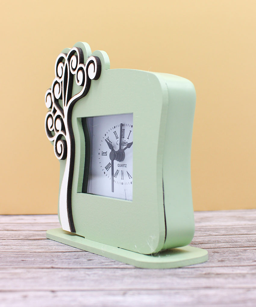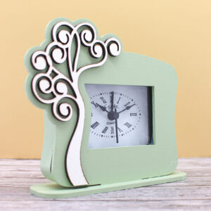 Bomboniera Orologio Albero della Vita in Legno Verde Salvia 12×12 cm