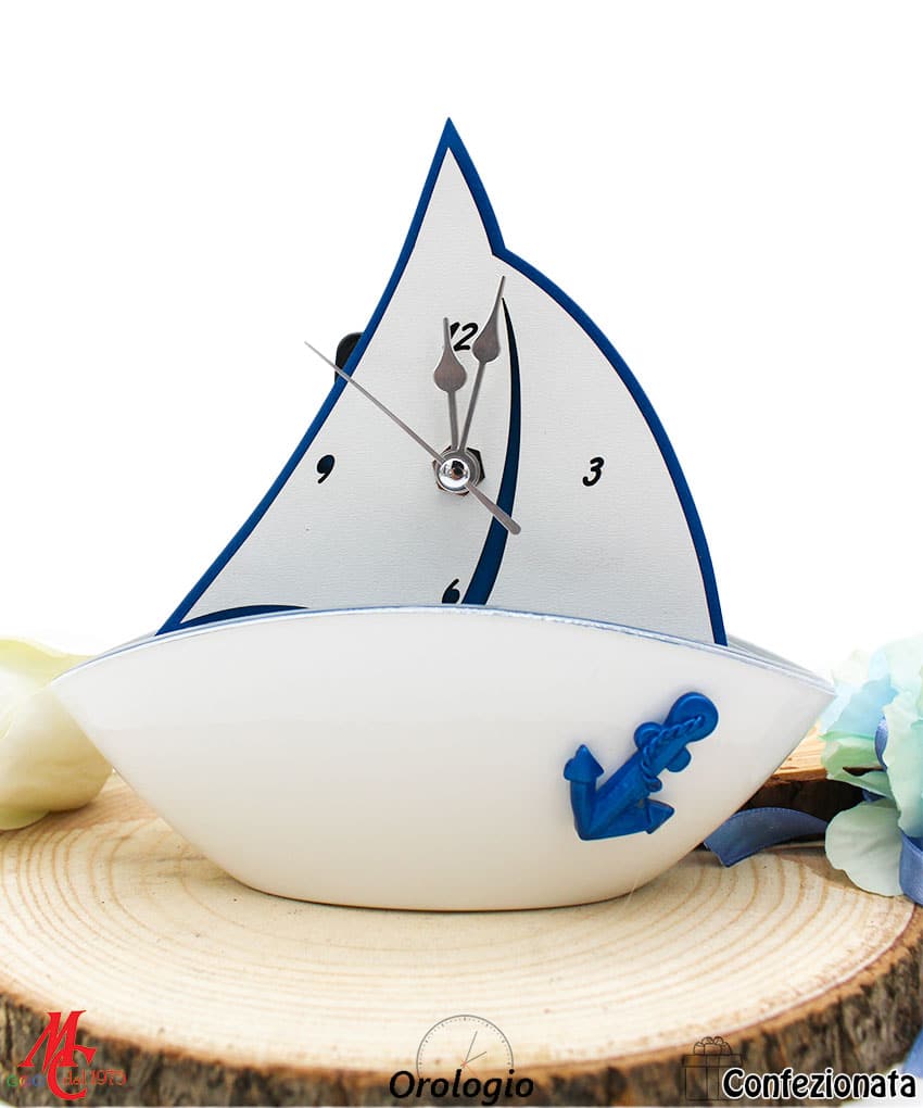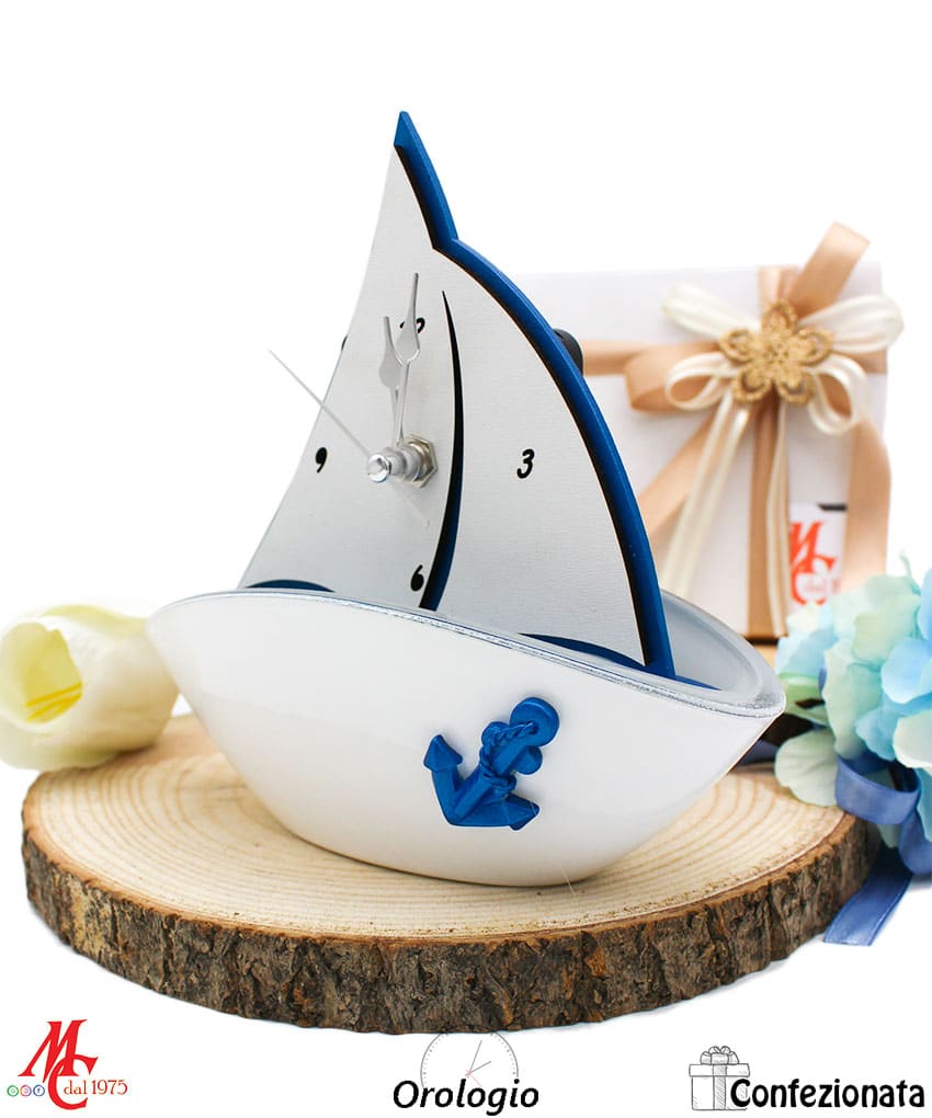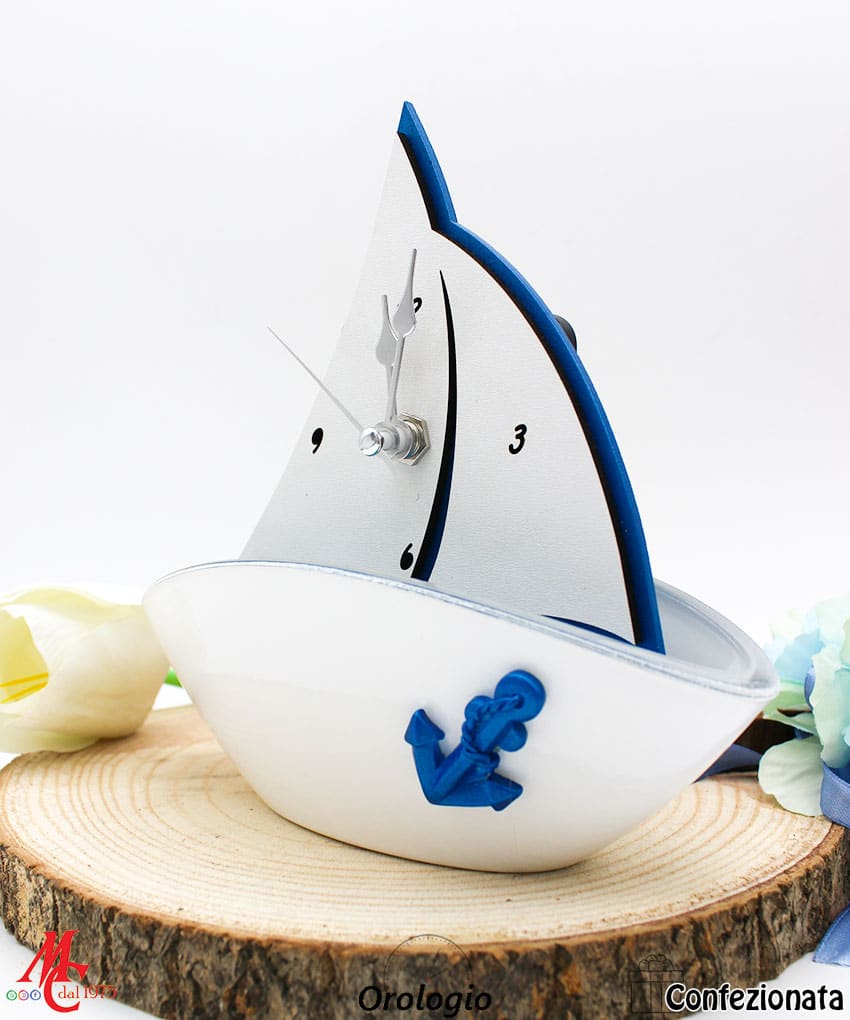 Bomboniera tema mare con Orologio da Tavolo in Legno – Completa di Confezione