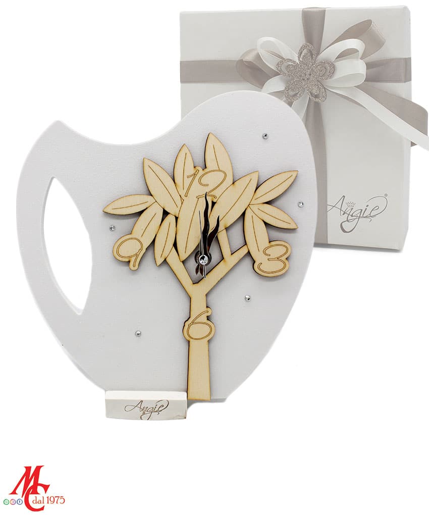 - Modello: Bomboniera Orologio con Albero di Ulivo in Legno
