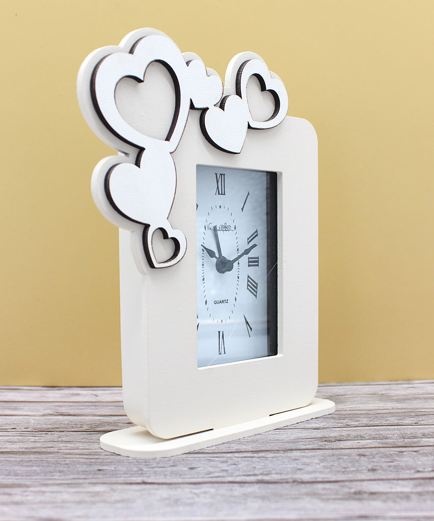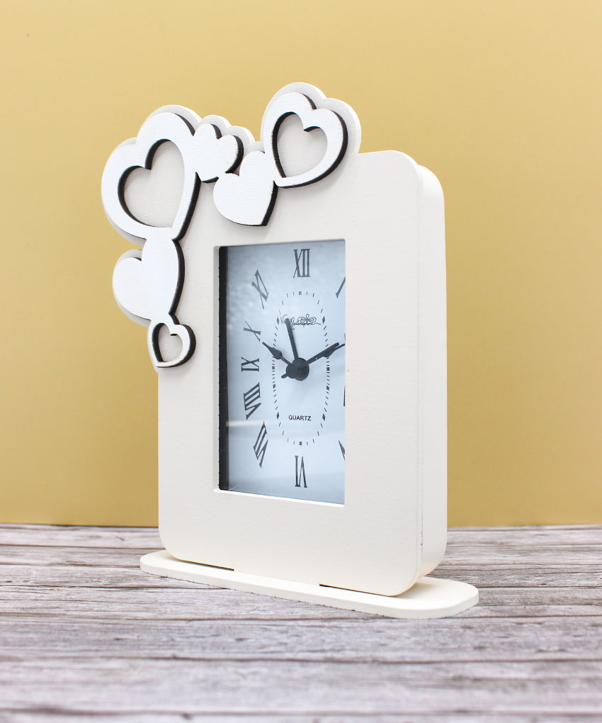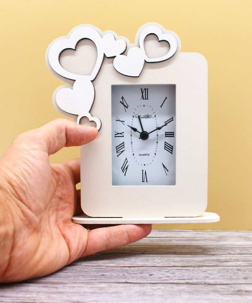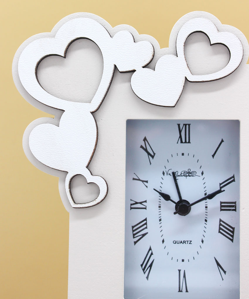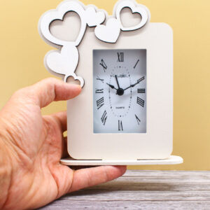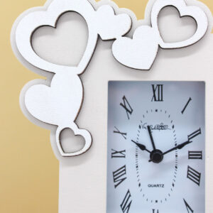 Bomboniera Orologio da Tavolo con Cuori – Colore Sabbia – 13 × 16 cm