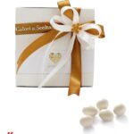 - 5 confetti Bianchi al Cioccolato inseriti in tulle con nastrino di raso ( stesso colore confezione esterna)