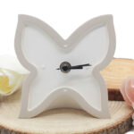 Raffinata ed elegante, la bomboniera orologio farfalla in polvere di resina bicolore bianco e tortora è una creazione firmata Giovinarte, azienda italiana rinomata per le sue bomboniere artigianali di alta qualità . Con dimensioni di 12 cm x 12,5 cm, questo orologio unisce funzionalità e design, rendendolo ideale per matrimoni, anniversari e altre occasioni speciali.giovinarte.com