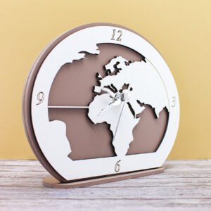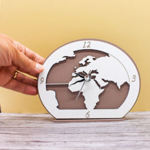 Realizzato in legno intagliato al laser, si distingue per la cura dei dettagli e per la raffinata finitura color fango, una tonalità calda e contemporanea che si integra armoniosamente in diversi stili d’arredo. Le dimensioni di 17 × 14 cm lo rendono un complemento decorativo equilibrato, capace di unire estetica e funzionalità grazie al pratico orologio da tavolo.