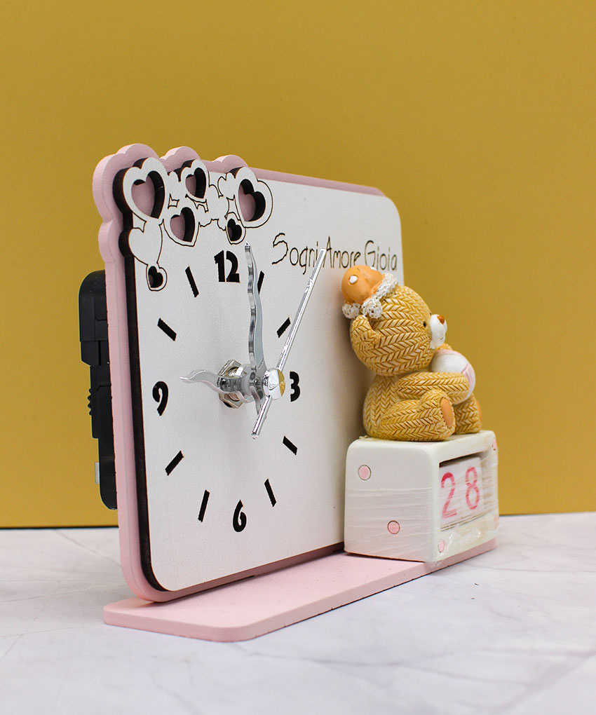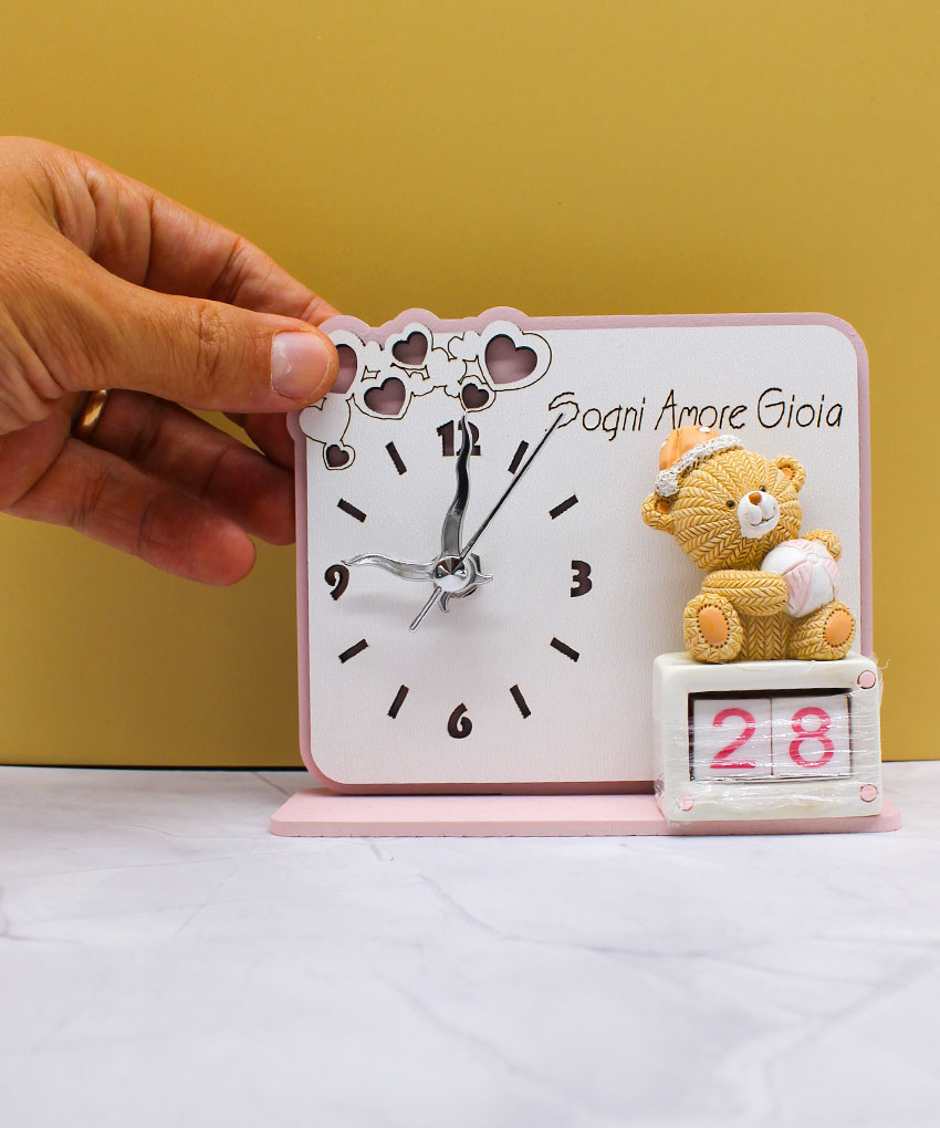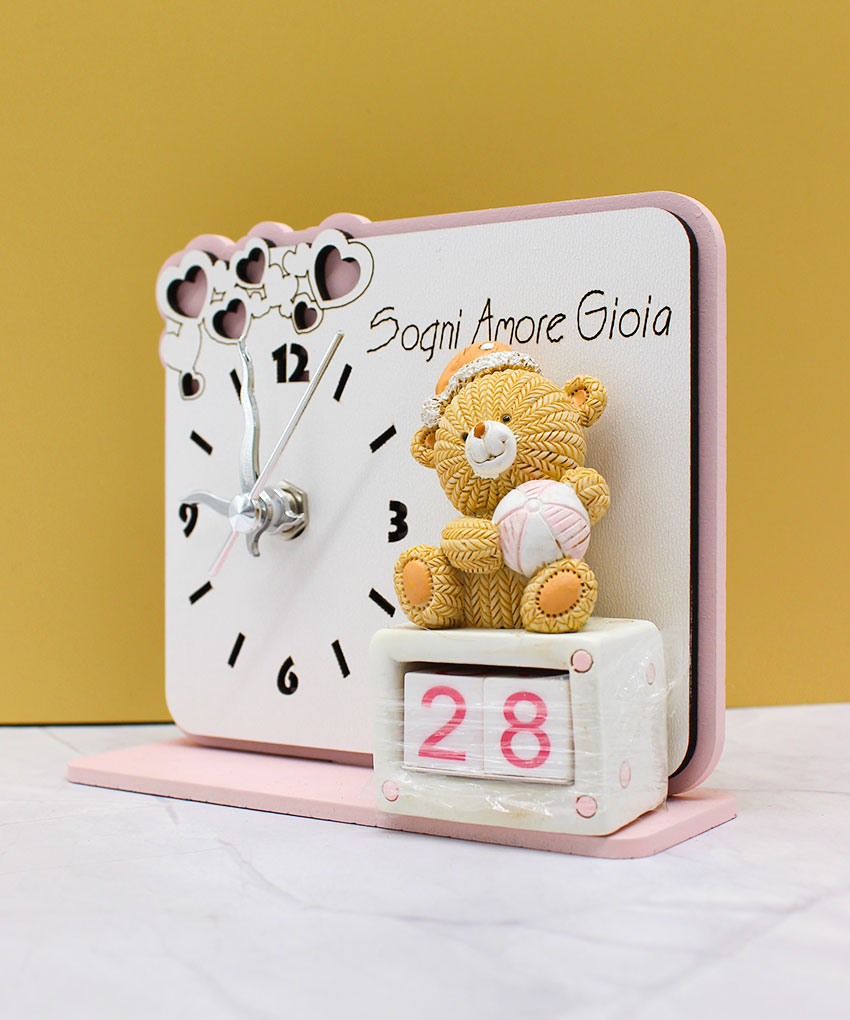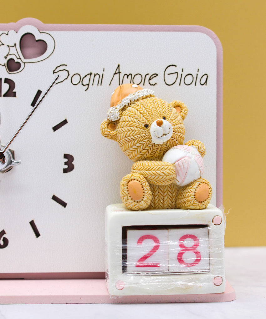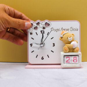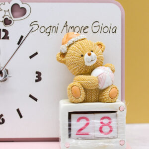 Bomboniera Orologio con Orsetto e Datario Rosa