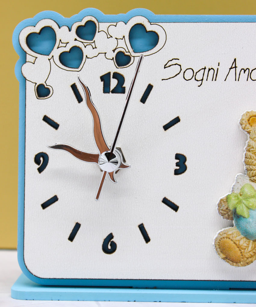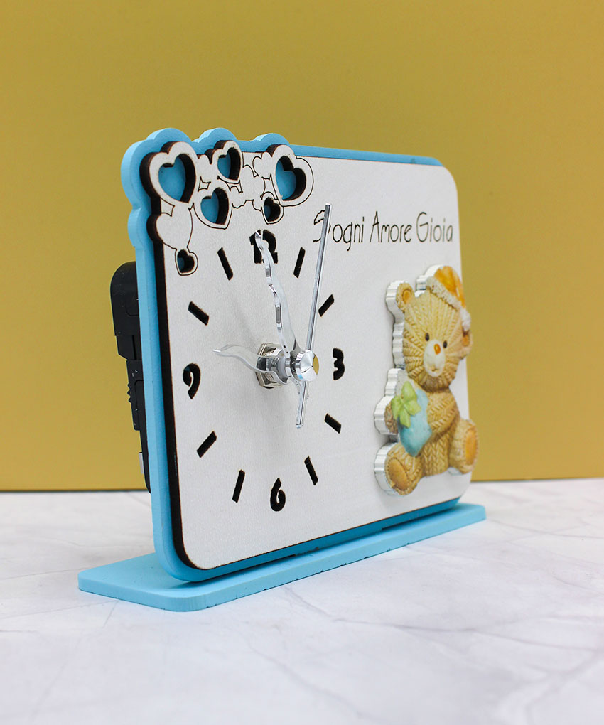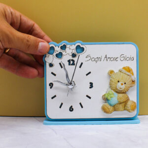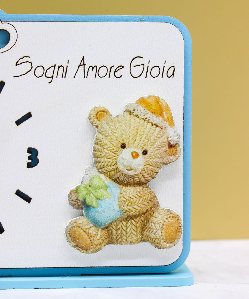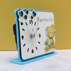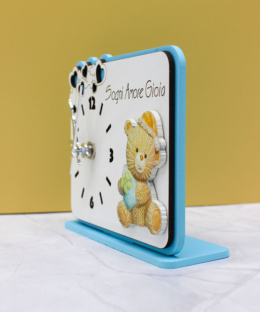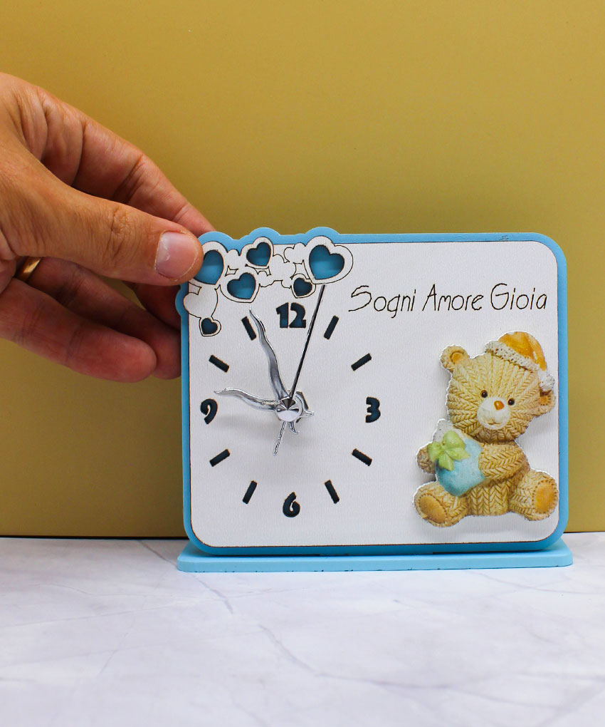 Bomboniera Orologio con Orsetto in Plex – Colore Celeste