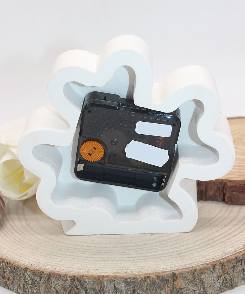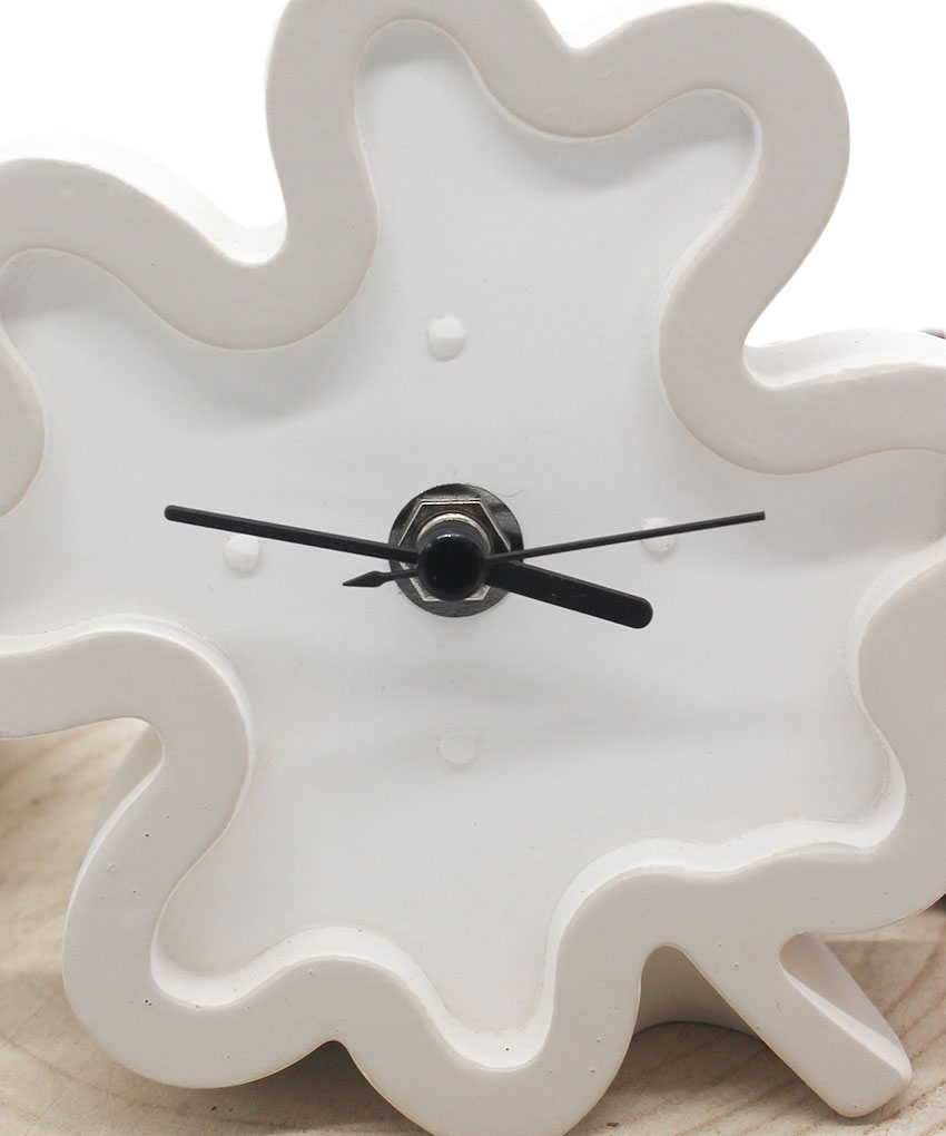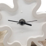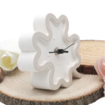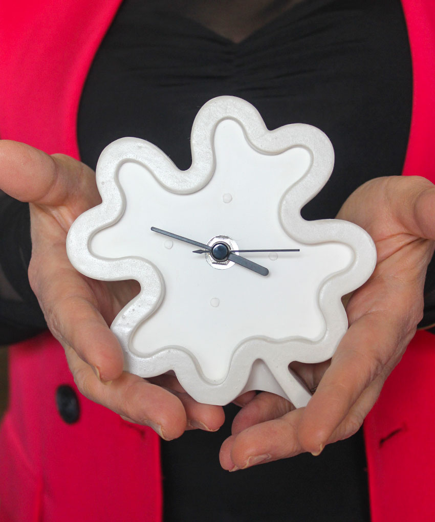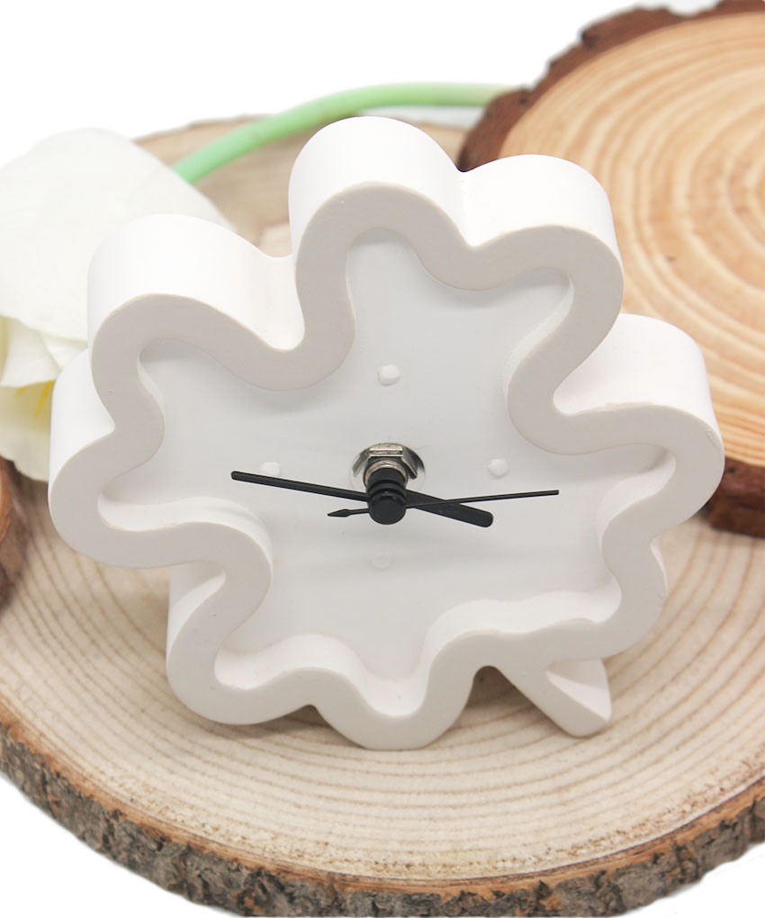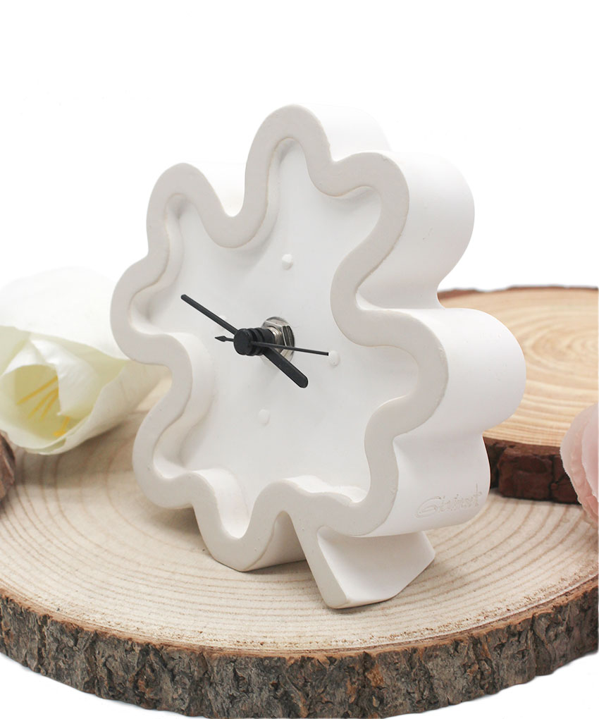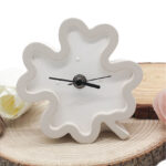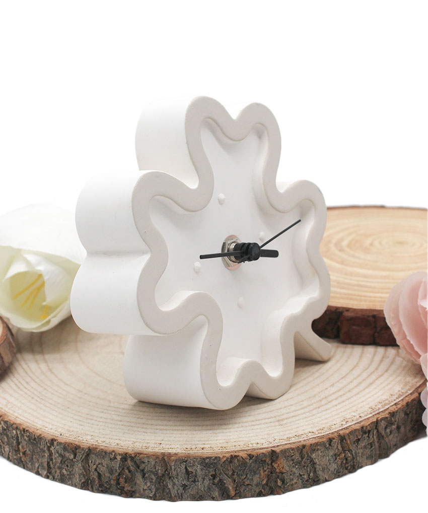 Porta fortuna ed eleganza si incontrano in questa raffinata bomboniera orologio a forma di quadrifoglio, realizzata in polvere di resina bicolore bianco e tortora. Un complemento d’arredo firmato Giovinarte, azienda italiana specializzata nella produzione di articoli da regalo e bomboniere artigianali, che si distingue per la qualità dei materiali e la cura nei dettagli.