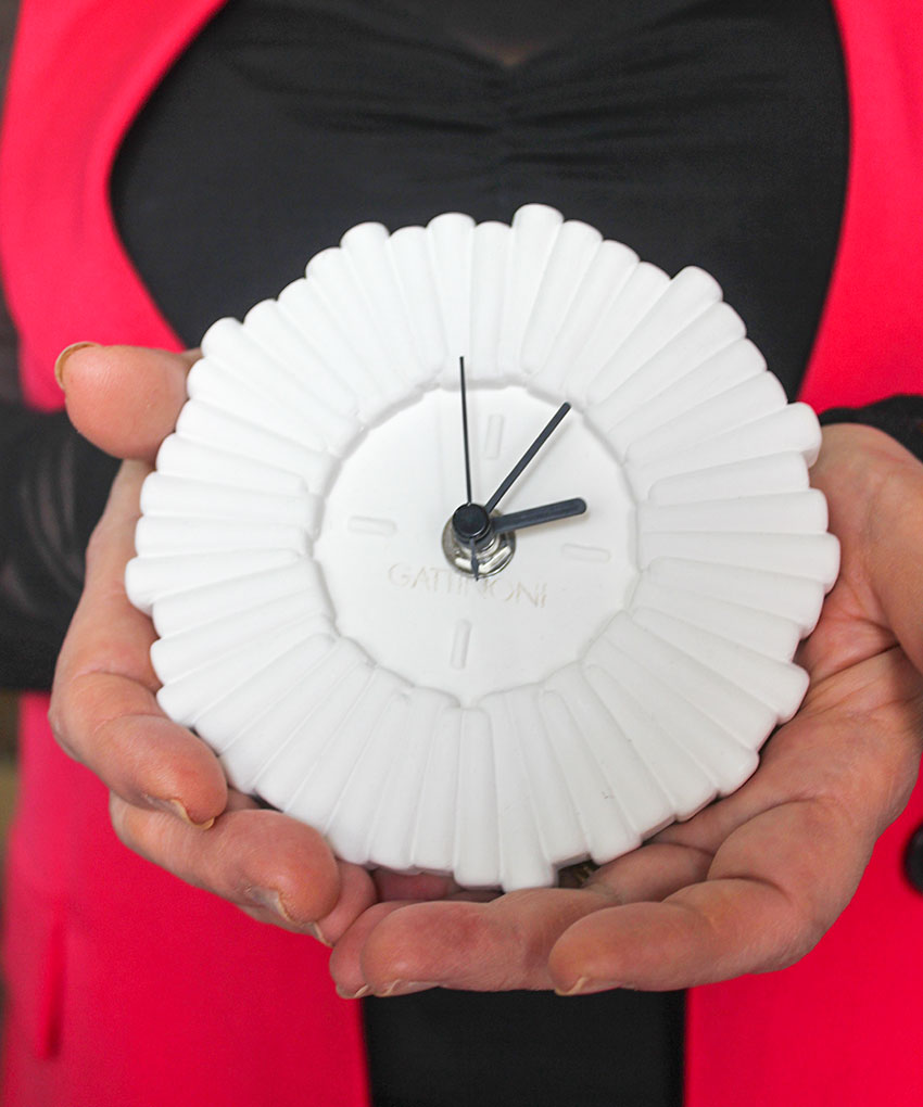 Bomboniera Orologio Tondo “Raggi di Sole” in Resina Bianca – Firmato Gattinoni