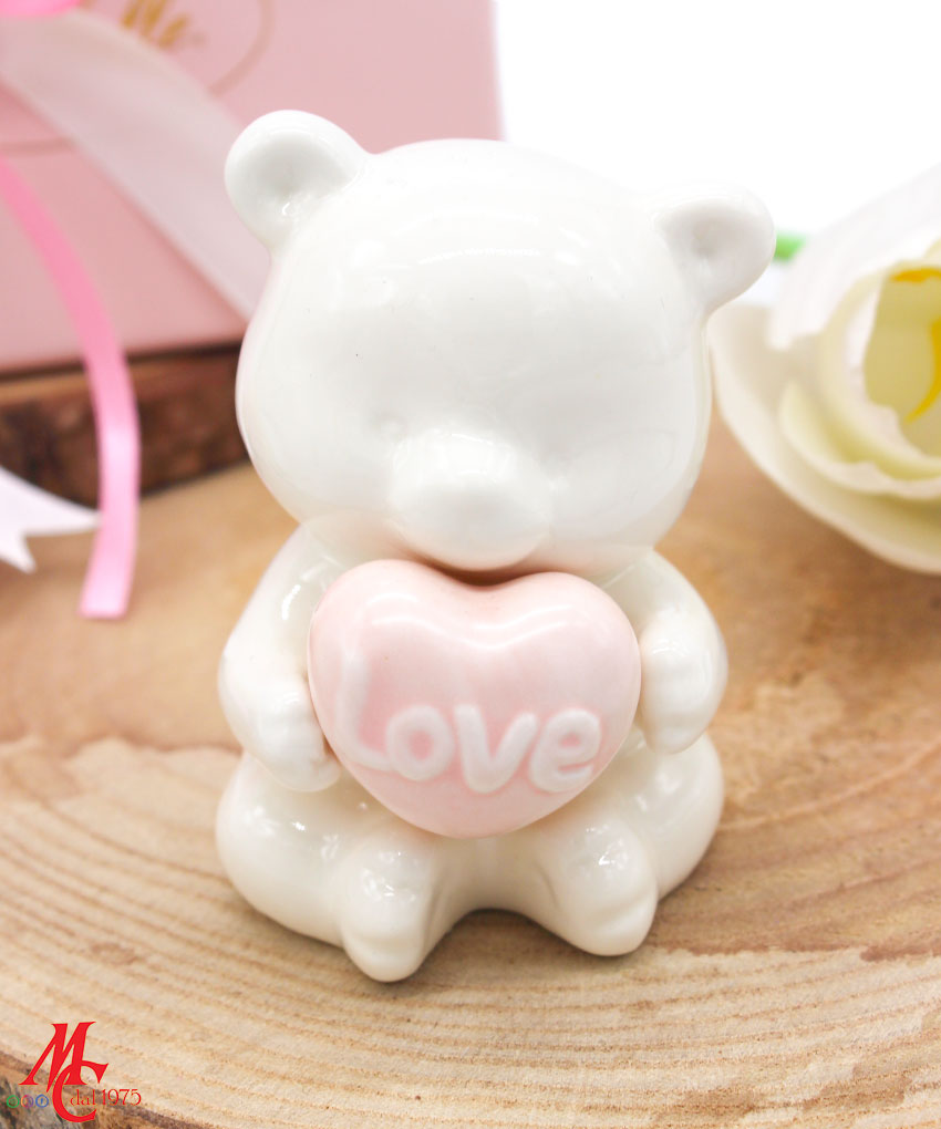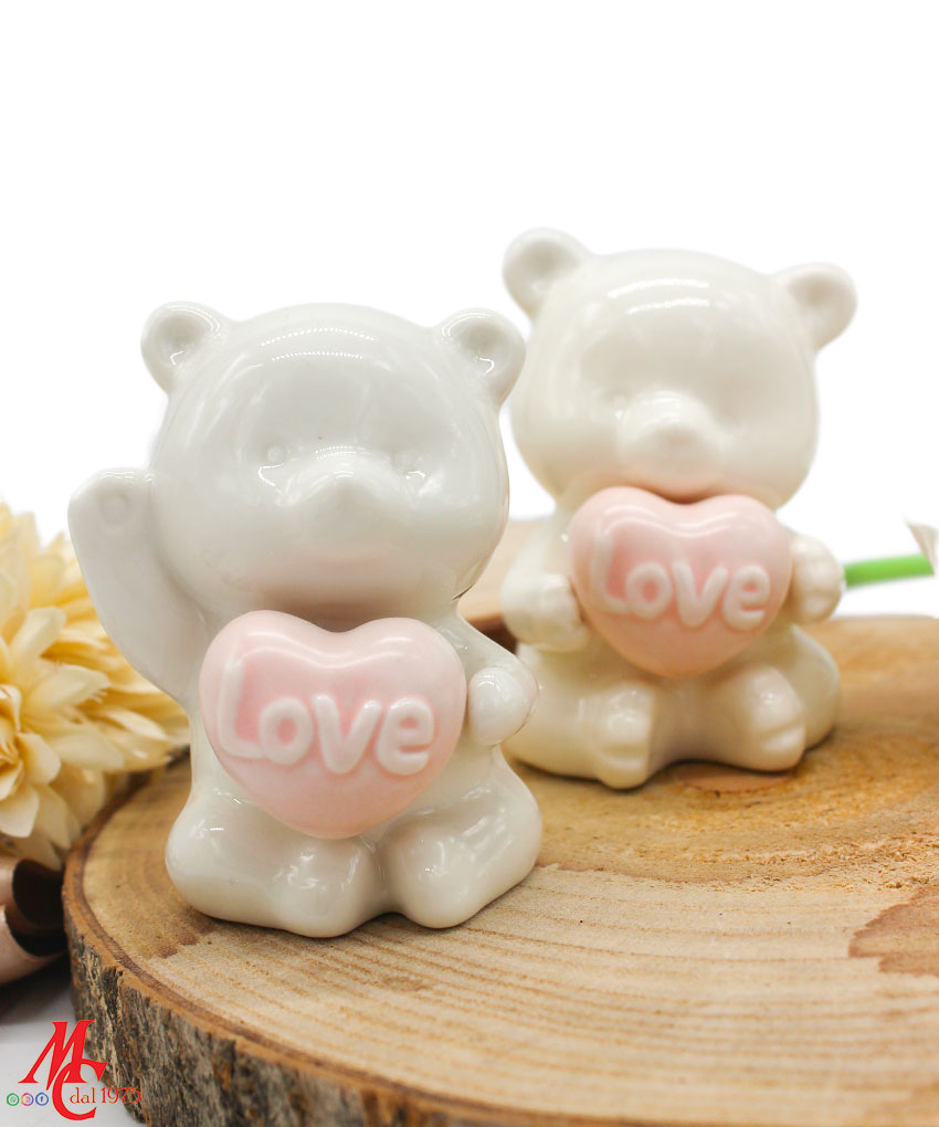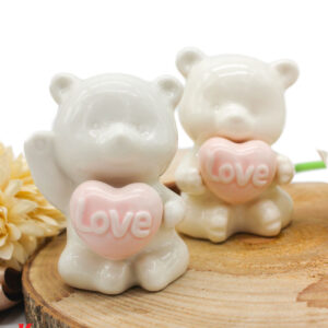 Bomboniera Orsetto Cuore Porcellana Rosa – 2 Varianti Assortite