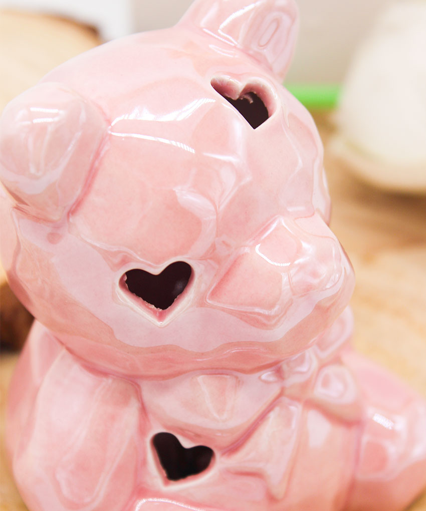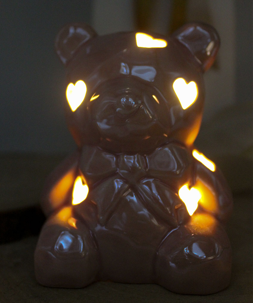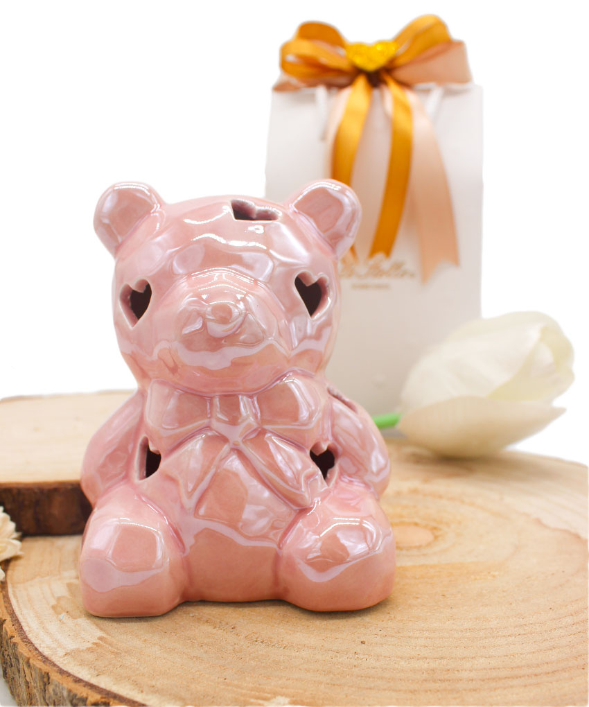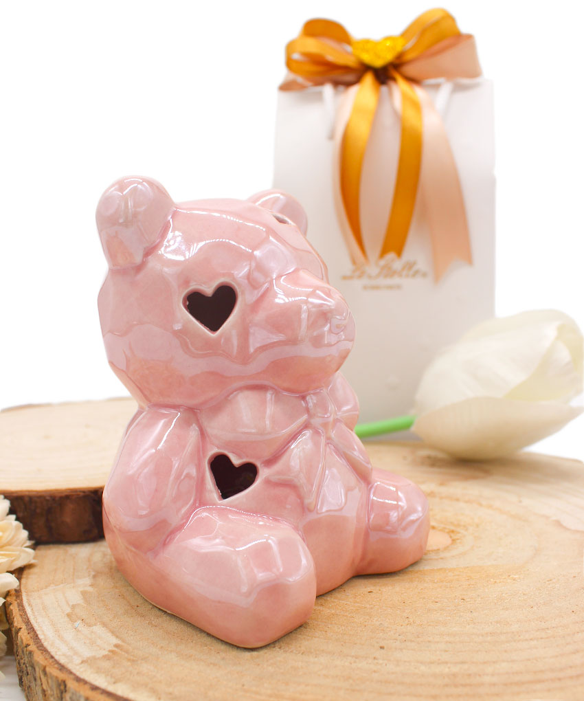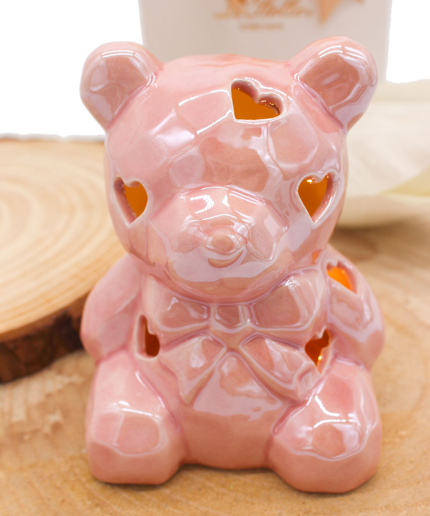 Bomboniera Battesimo Orsetto Rosa in Porcellana con Luce LED
