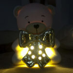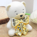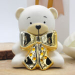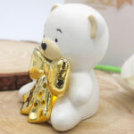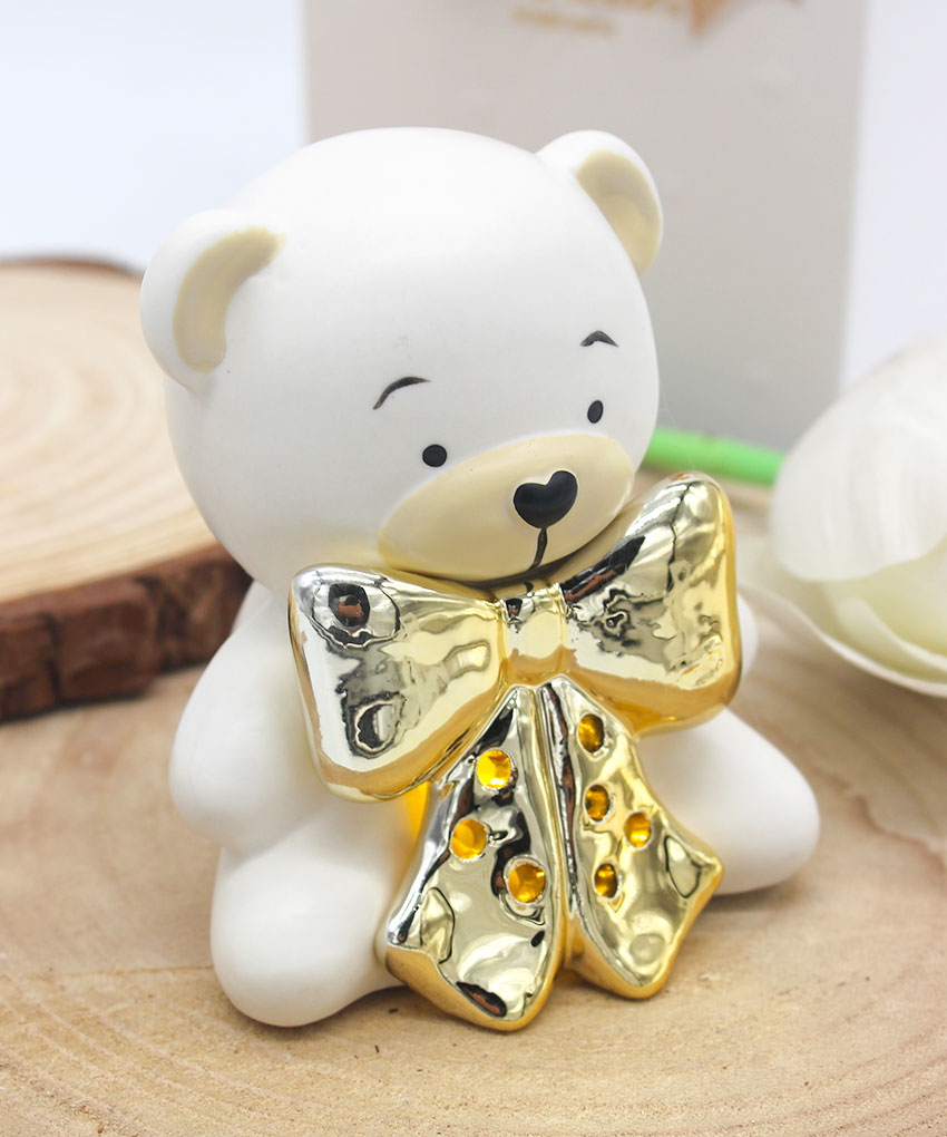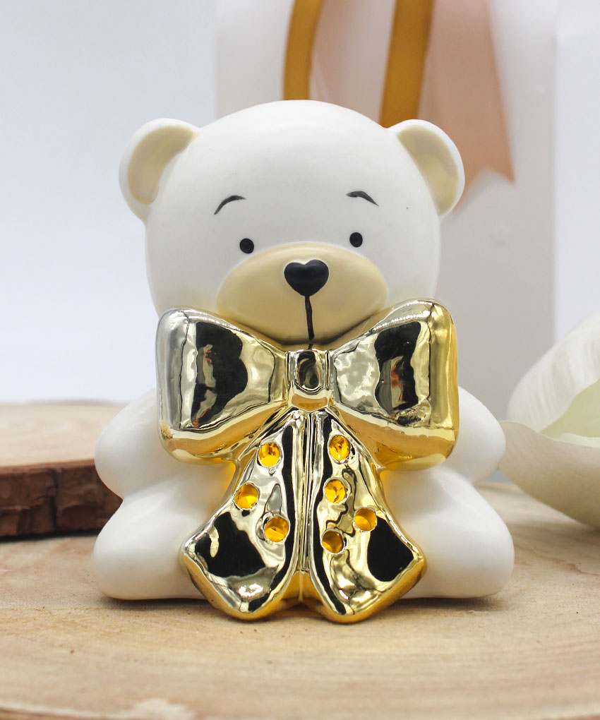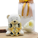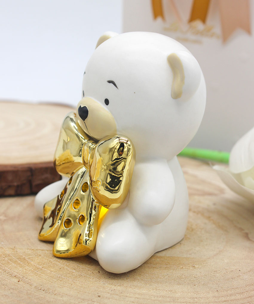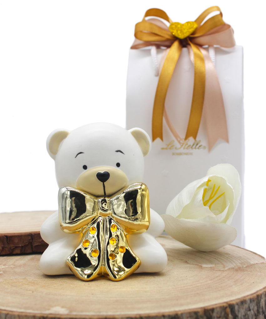 Bomboniera Orsetto Porcellana con LED e Fiocco Oro – Confezione Omaggio Inclusa