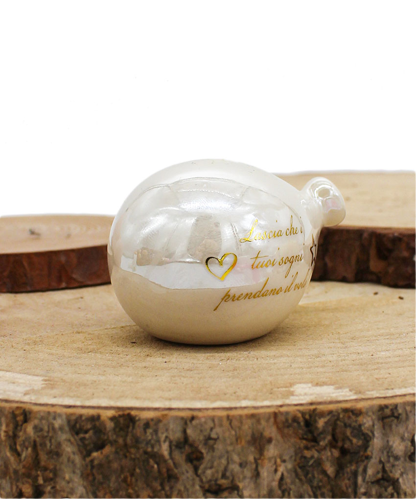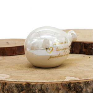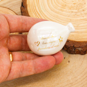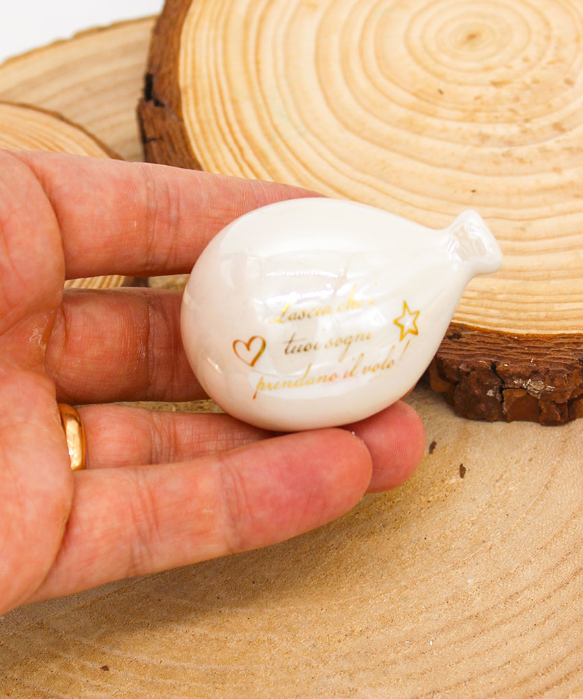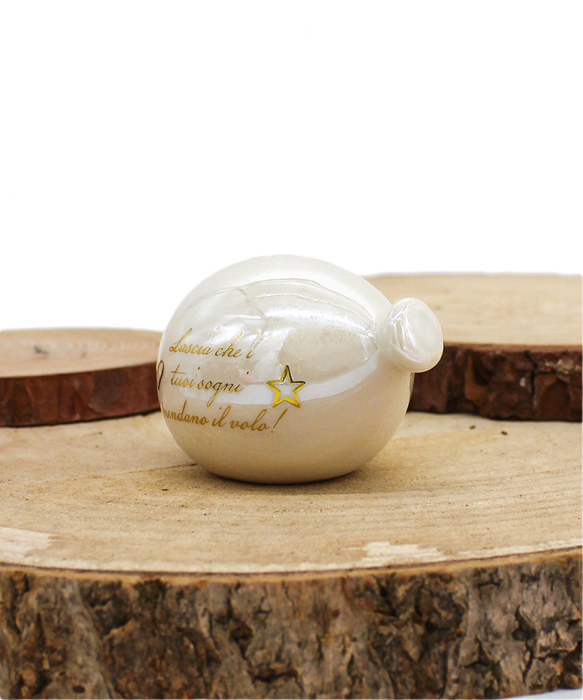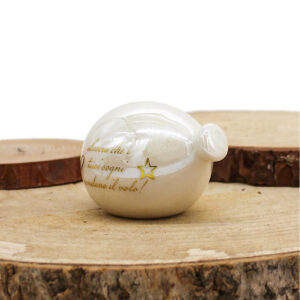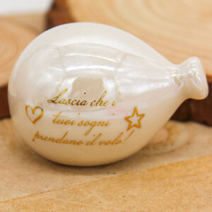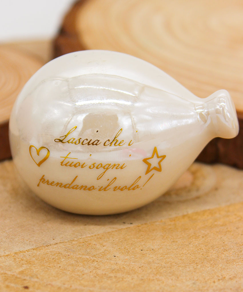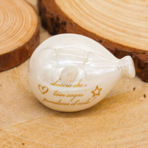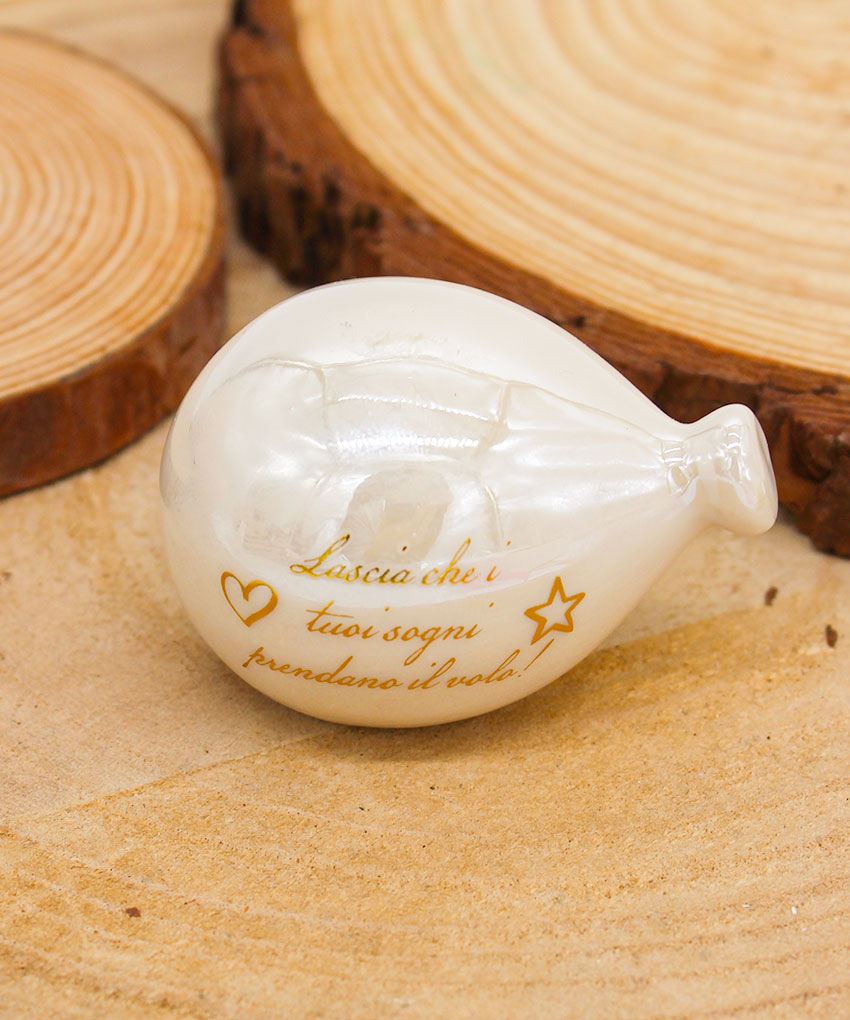 P64B Bomboniera Palloncino in Porcellana Bianco Effetto Madreperla con Frase