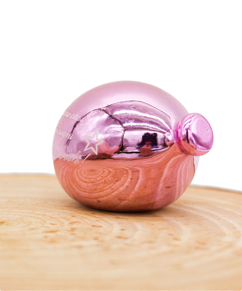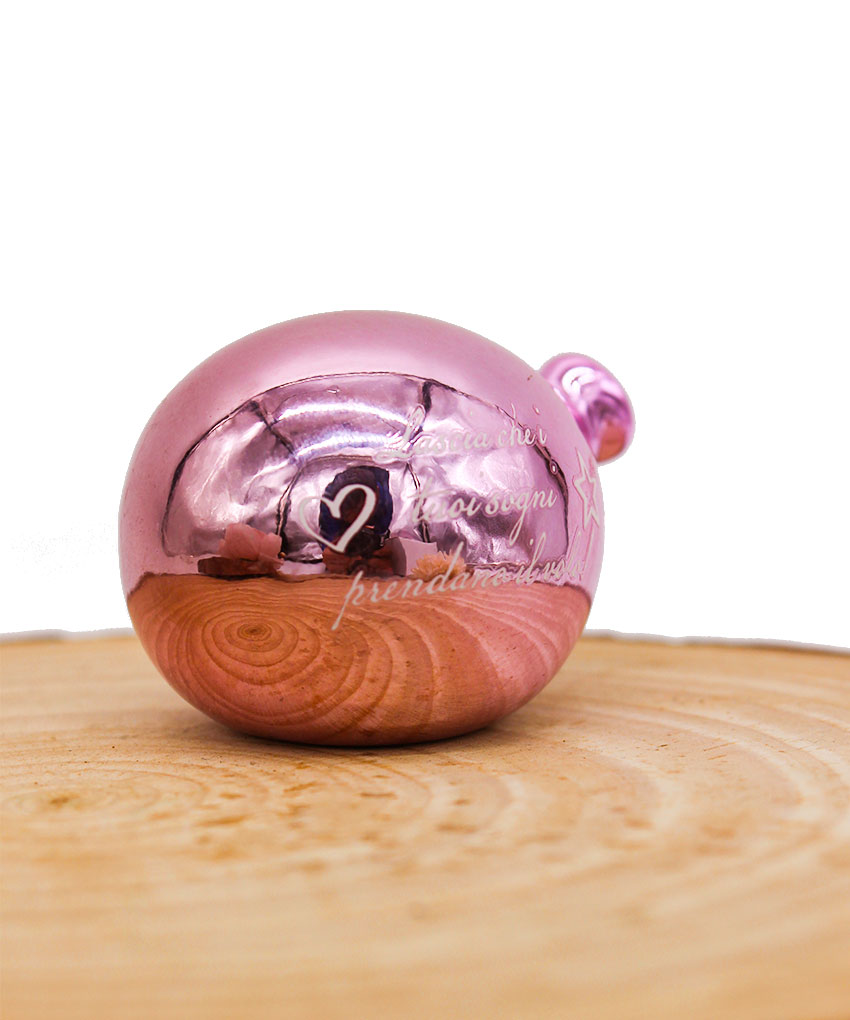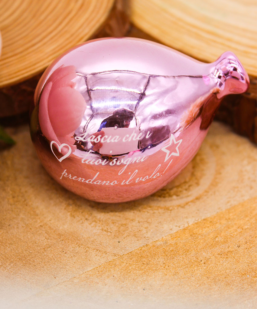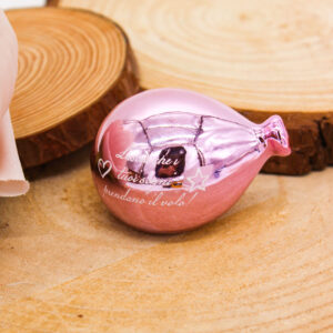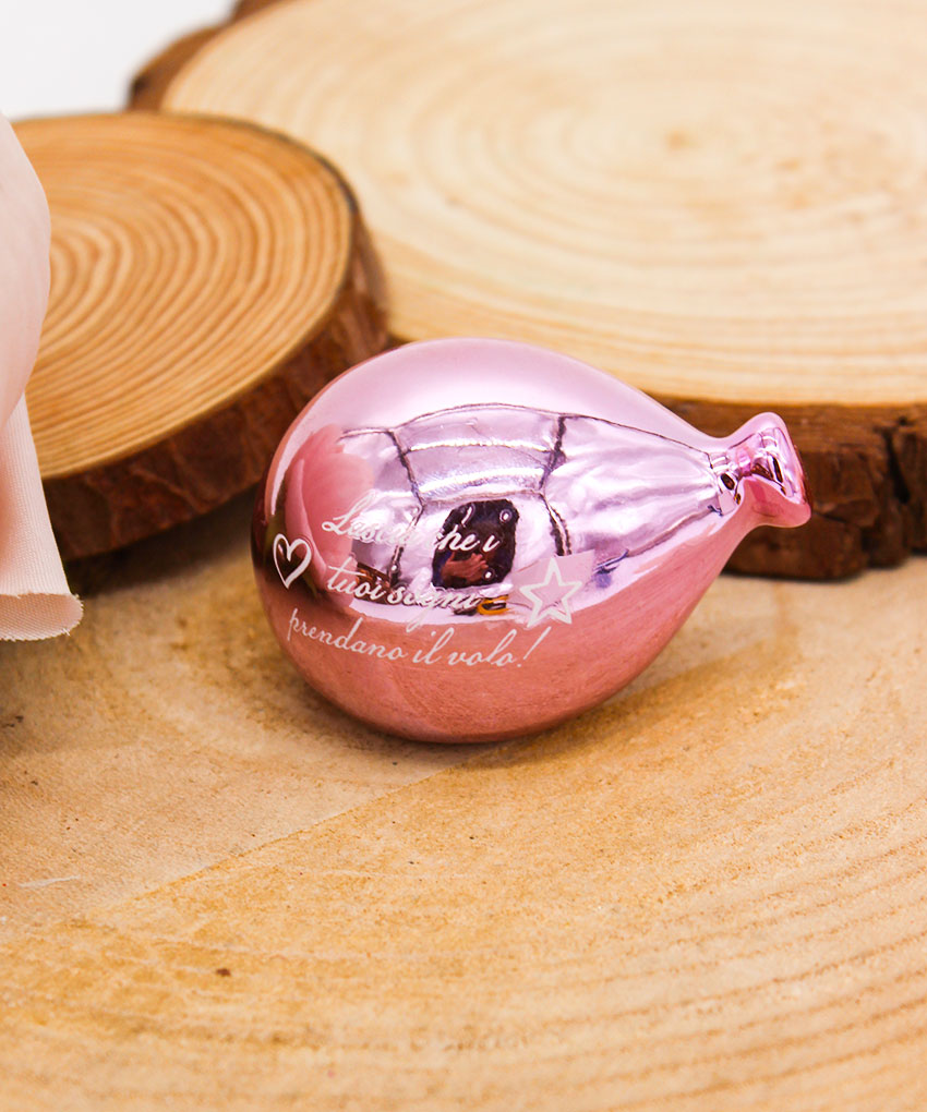 P64R Bomboniera Palloncino in Porcellana Rosa Lucido Specchiato con Frase