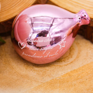 La frase incisa “Lascia che i tuoi sogni prendano il volo” aggiunge un valore emozionale unico, trasformando questo oggetto in un ricordo speciale da conservare nel tempo.