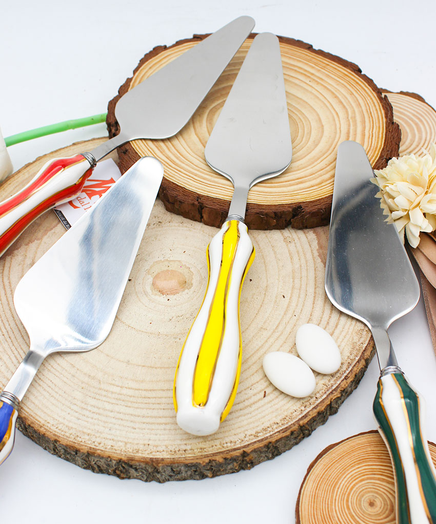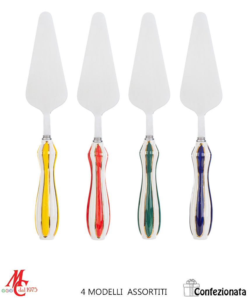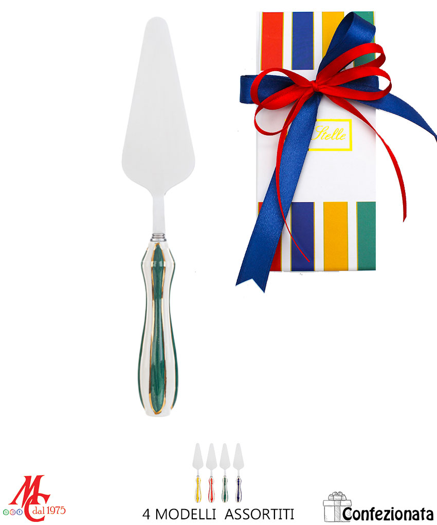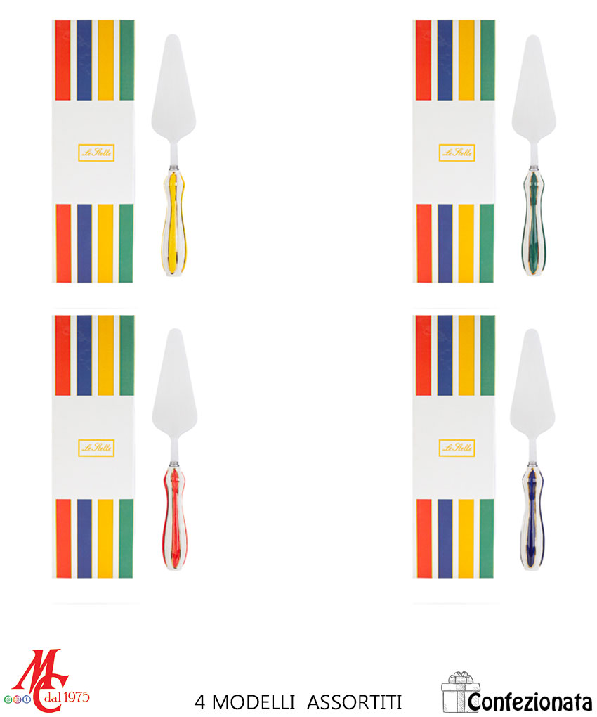 La Paletta Torta Bomboniera si distingue per il suo design ergonomico e colorato. Il manico, disponibile in quattro colori assortiti, offre una presa confortevole e sicura. La lama affilata e precisa consente di tagliare e servire le fette di torta in modo elegante, aggiungendo un tocco di classe a qualsiasi festa o celebrazione.
