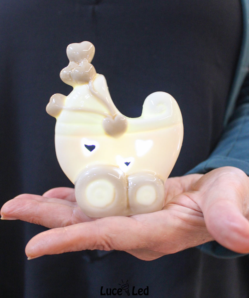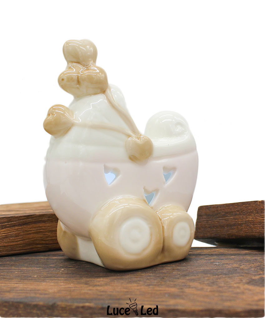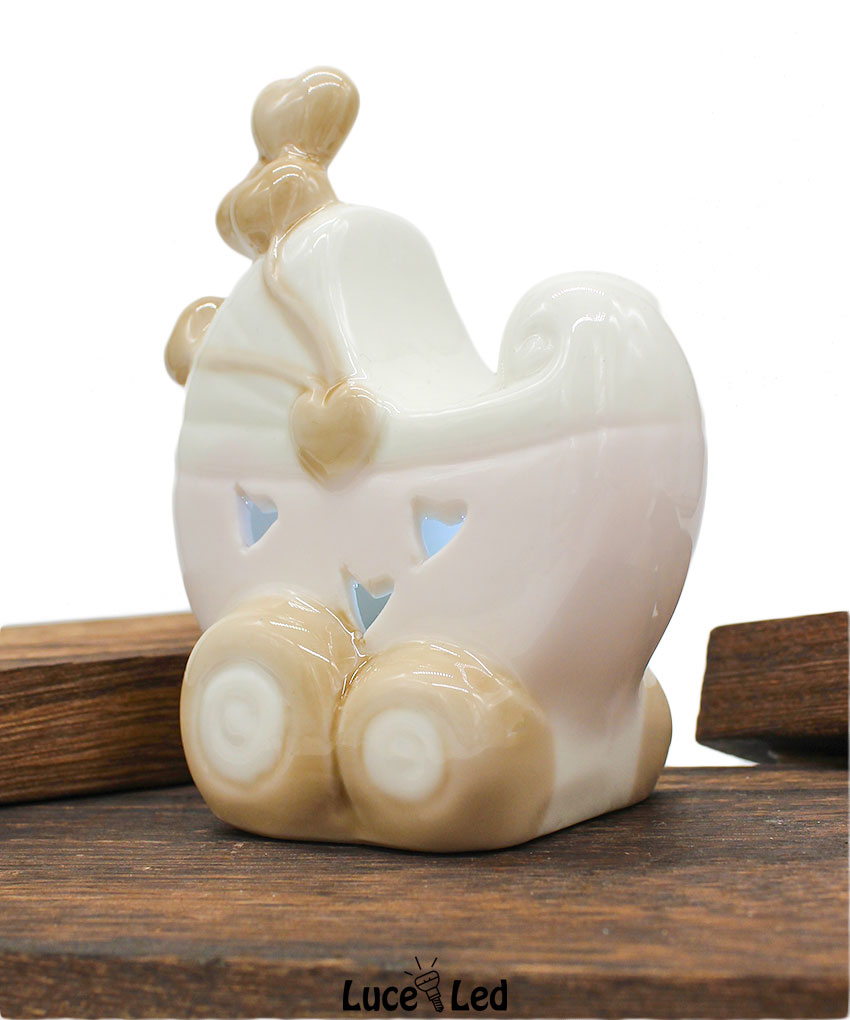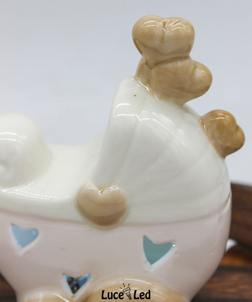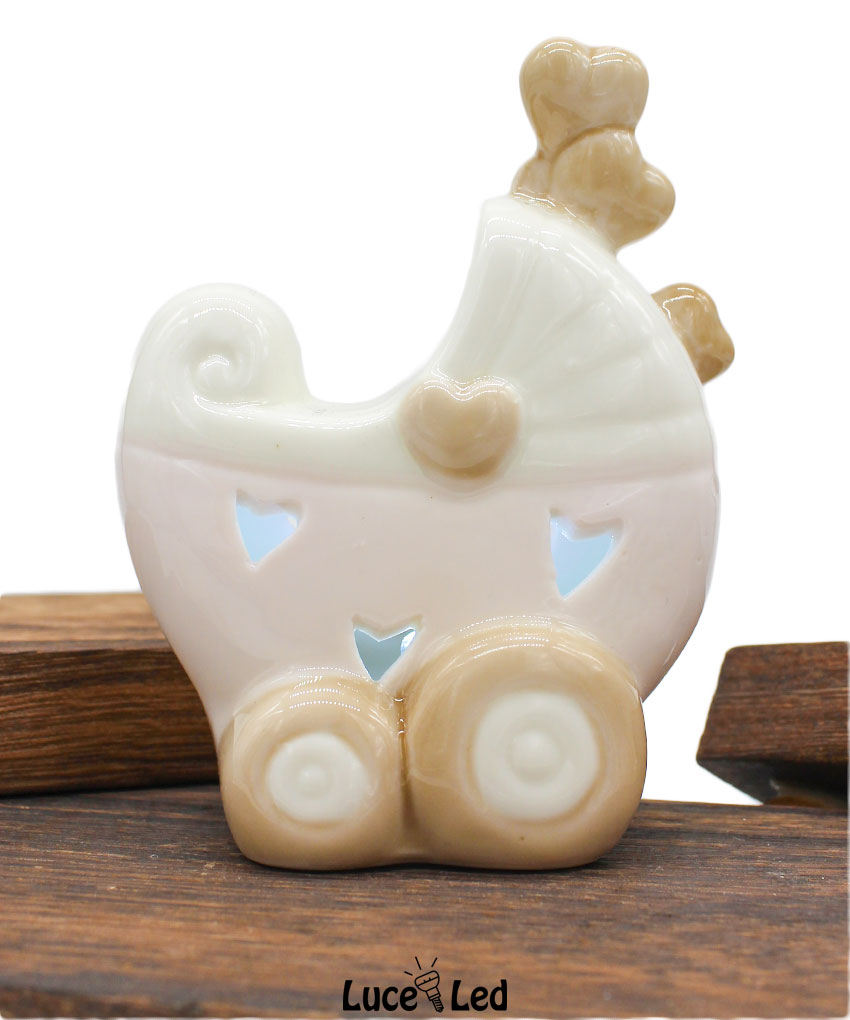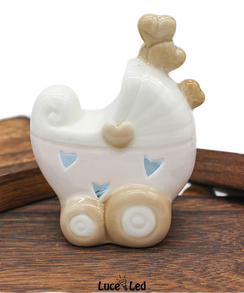 Rendi speciale il tuo evento con questa incantevole bomboniera a forma di passeggino rosa con luce LED, un simbolo di tenerezza perfetto per celebrare una nascita, un battesimo o un baby shower. Realizzata in pregiata porcellana, questa bomboniera unisce raffinatezza e funzionalità, regalando un ricordo unico ai tuoi ospiti.