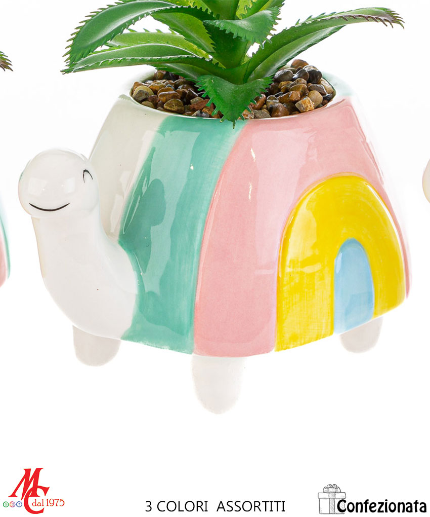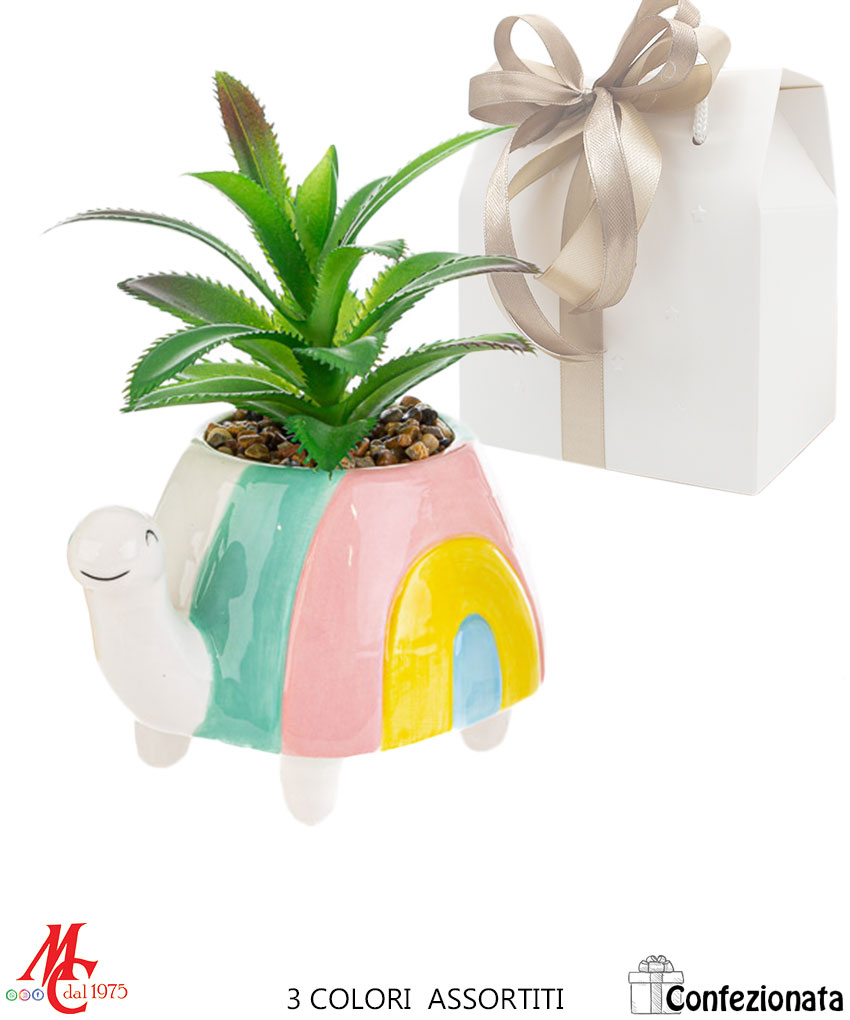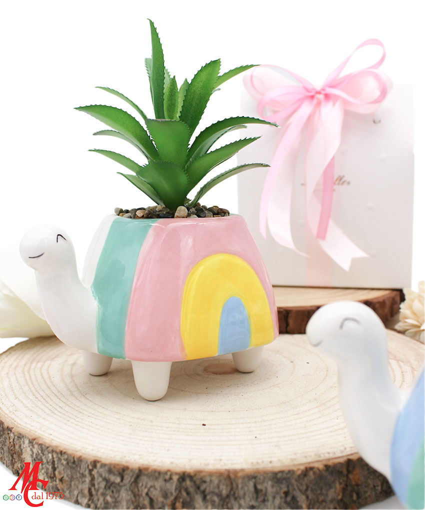 La Bomboniera Piantina Tartaruga Ceramica è un’adorabile soluzione per chi desidera offrire un ricordo verde e originale ai propri ospiti. Realizzata in ceramica di alta qualità, questa bomboniera si distingue per il suo design colorato e la presenza di una piantina artificiale che aggiunge un tocco di natura a qualsiasi ambiente. Perfetta per matrimoni, battesimi, comunioni e altri eventi speciali, questa tartaruga con piantina è tanto bella quanto funzionale.