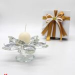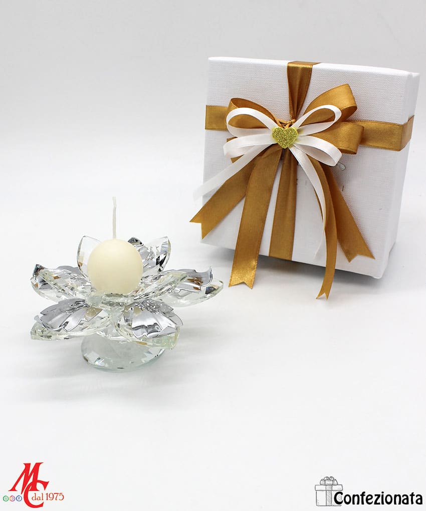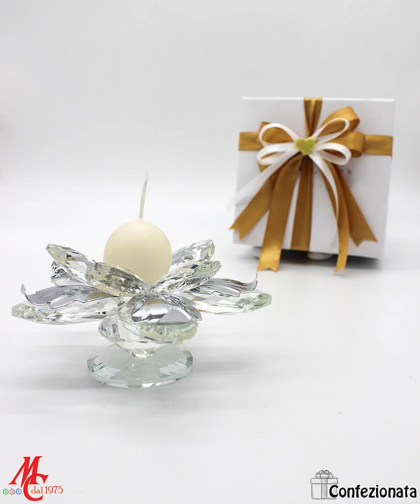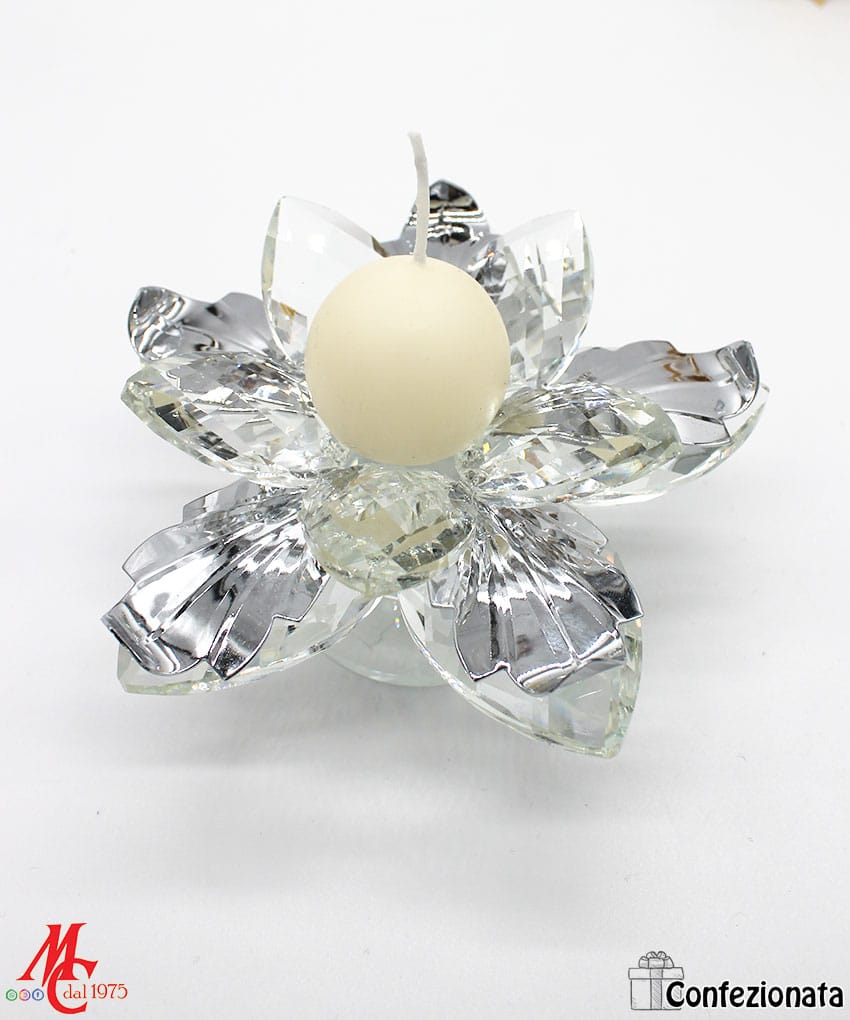 Bomboniera Confezionata – Porta-candele Fiore cristallo foglie Argento