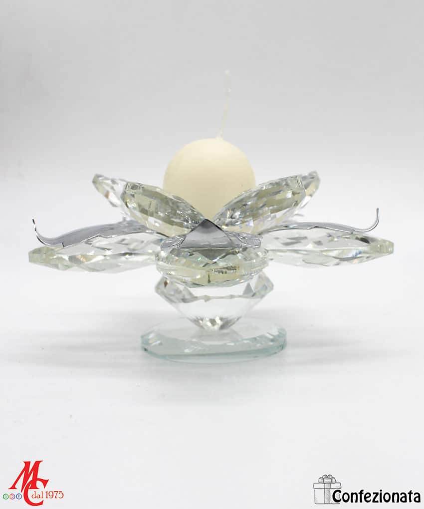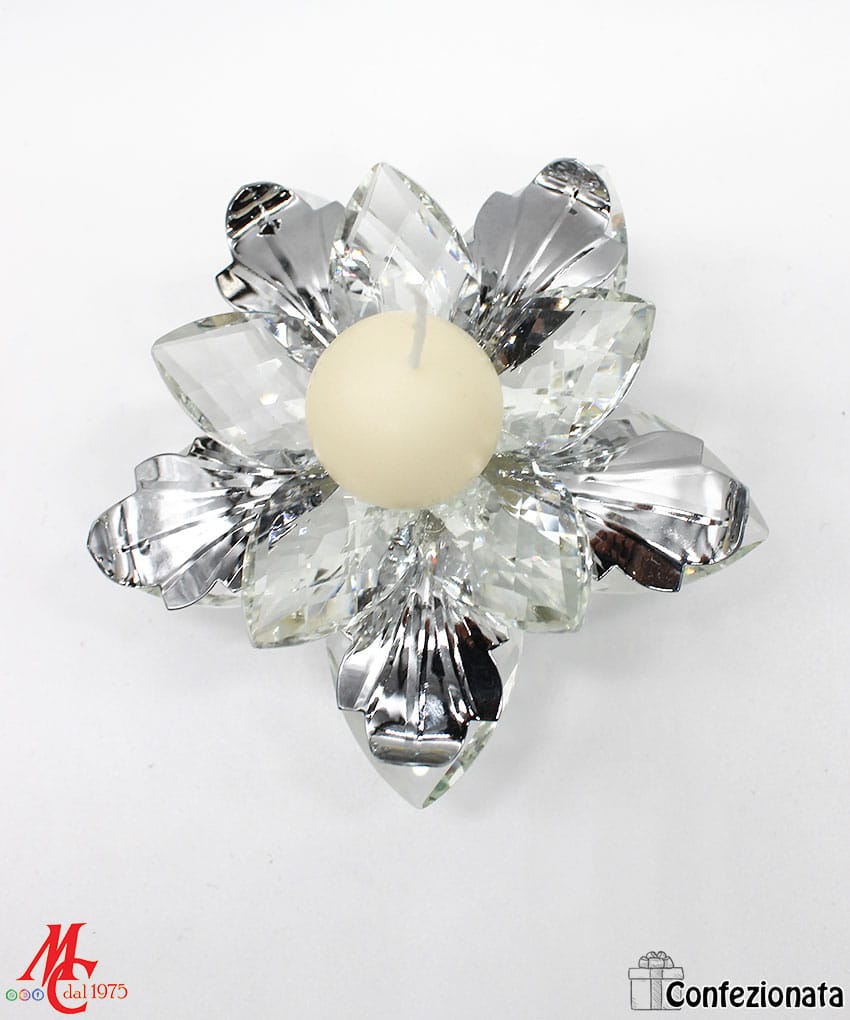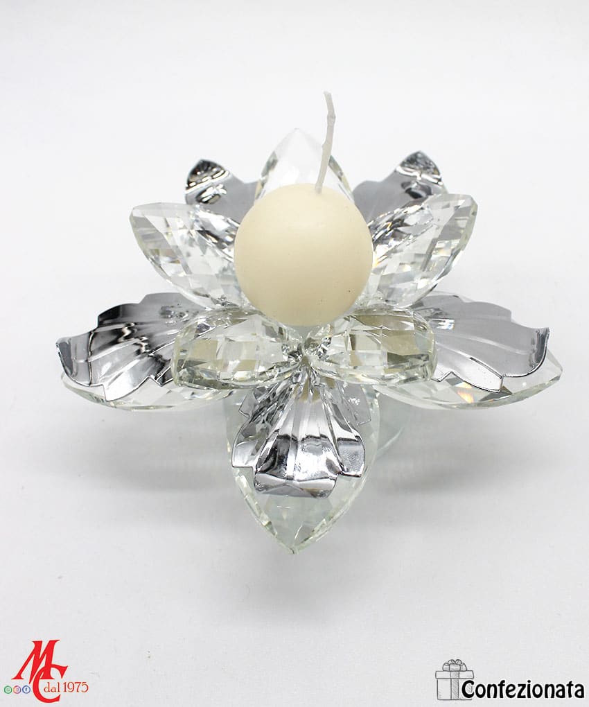 Bomboniera – Porta-candele Fiore cristallo foglie Argento