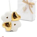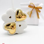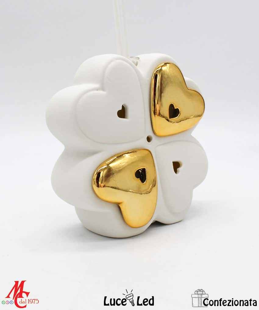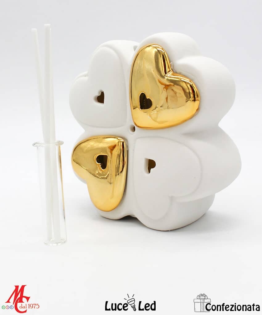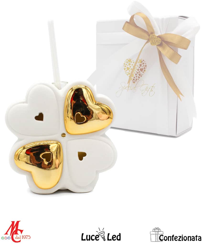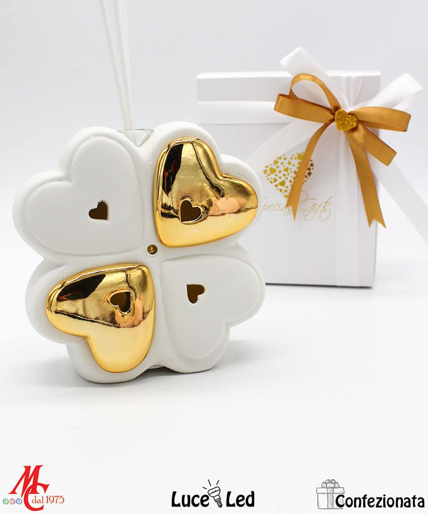 Bomboniera Completa di Confezione – Profumatore Quadrifoglio – Luce Led – Bianco e Oro