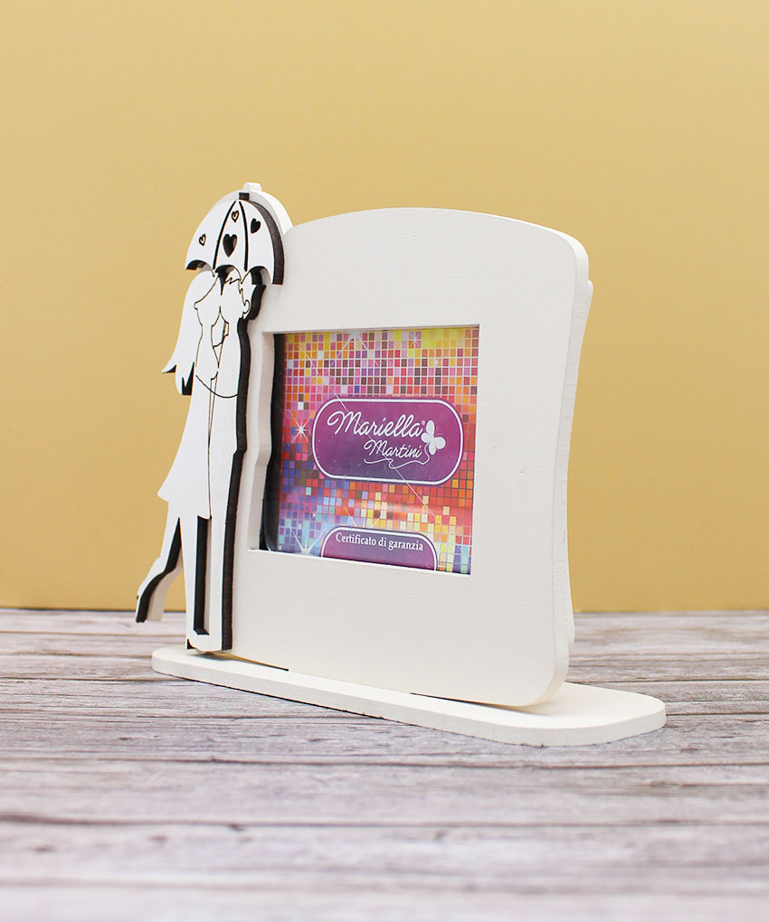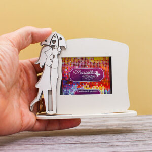 Bomboniera Portafoto con Coppia sotto l’Ombrello – Colore Sabbia – 12 × 10 cm
