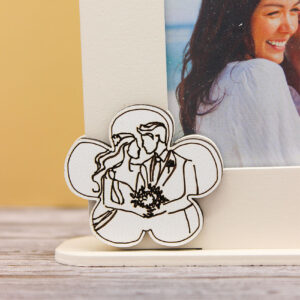 Grazie alle dimensioni di 12 × 14 cm, il portafoto è perfetto per custodire una fotografia significativa, trasformandosi in un oggetto decorativo capace di conservare nel tempo i ricordi più belli del giorno speciale.