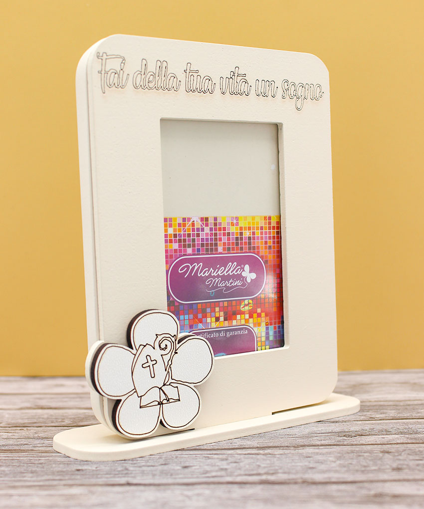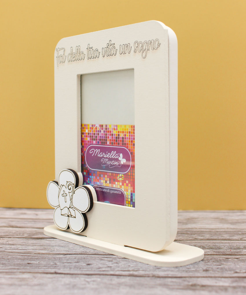 Bomboniera Portafoto Cresima Legno Sabbia 12×19 cm