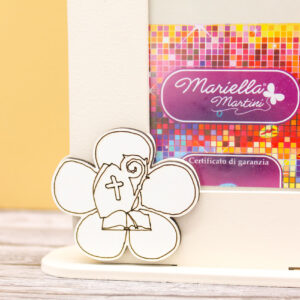 Grazie alle dimensioni di 12 × 19 cm, questo portafoto risulta funzionale e armonioso, pensato per essere esposto con eleganza negli ambienti domestici come ricordo duraturo della Cresima.