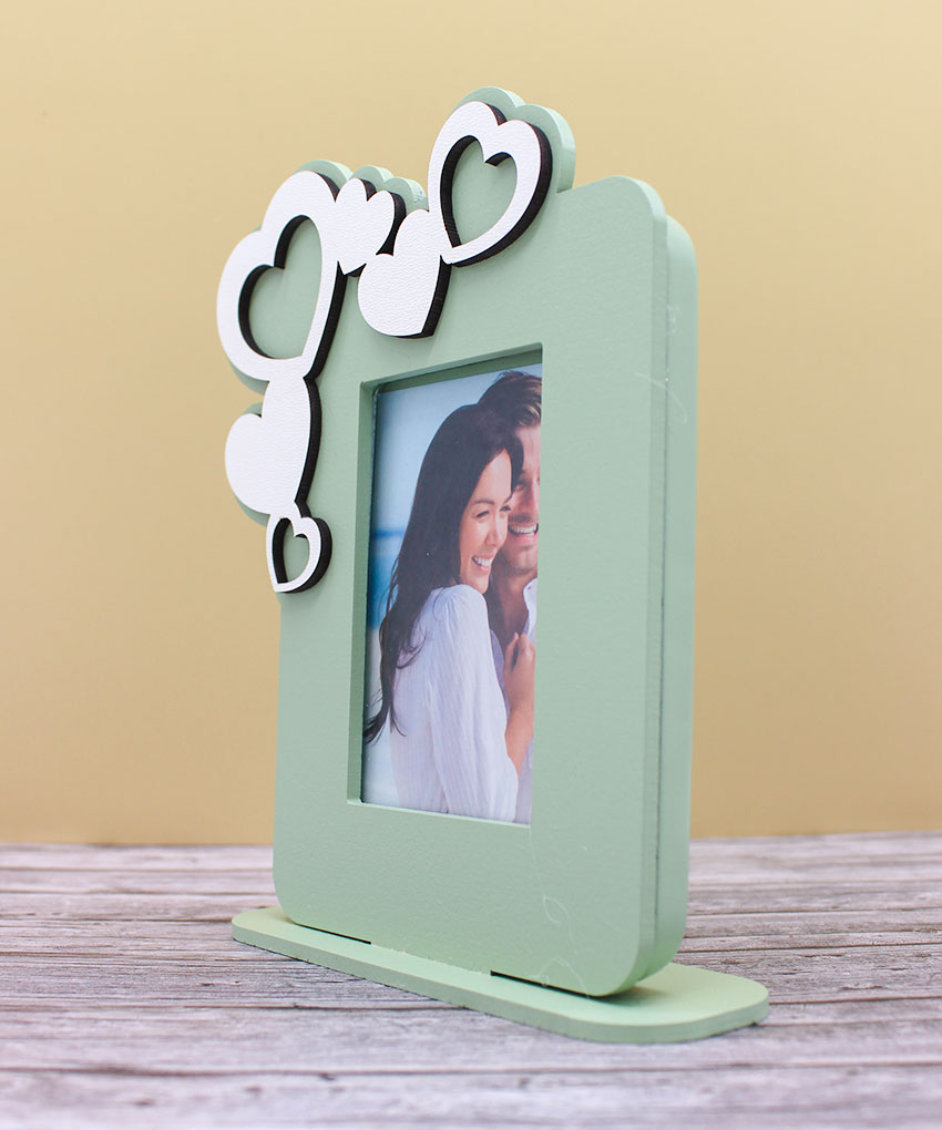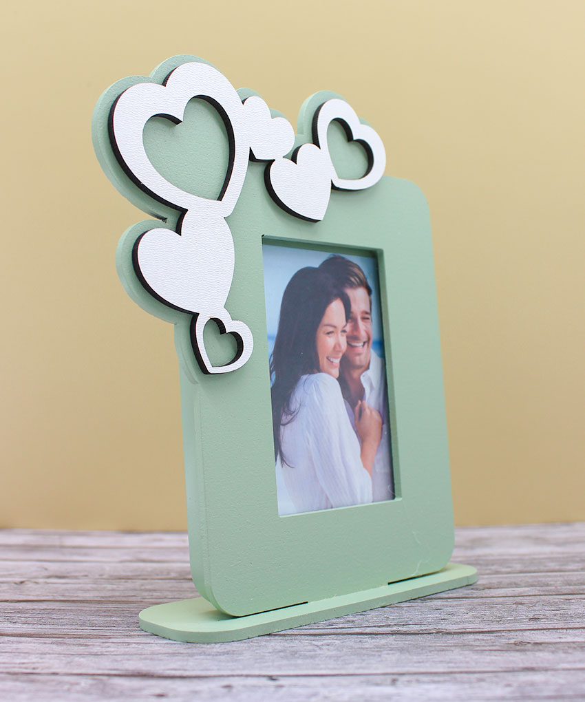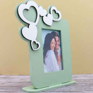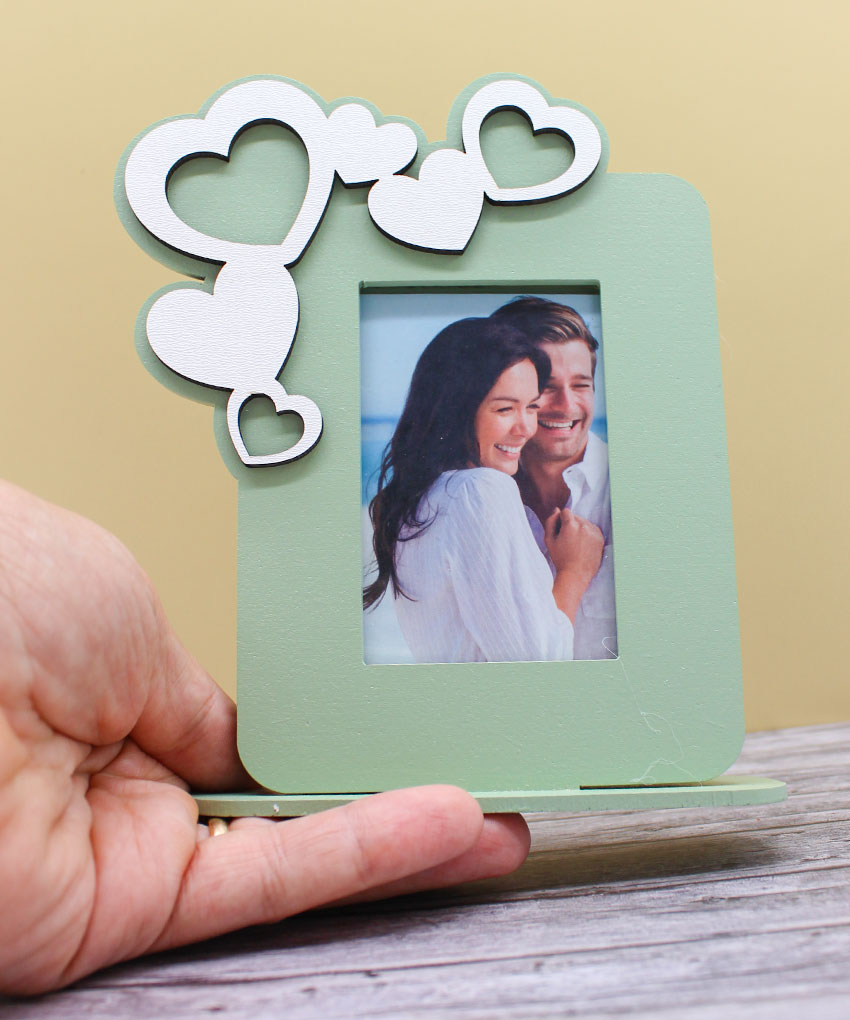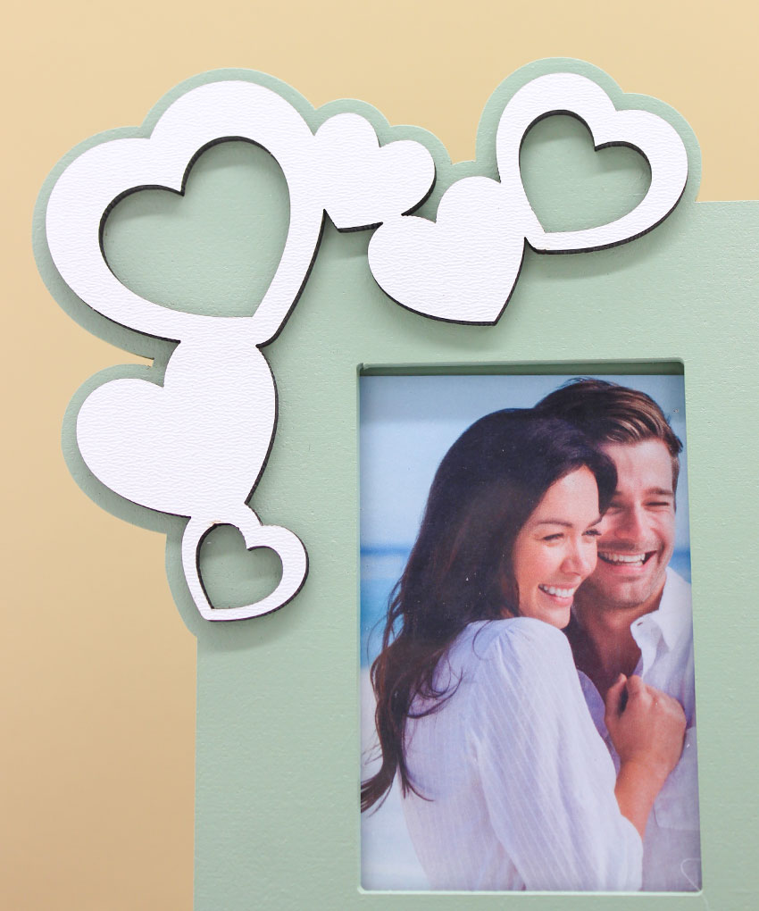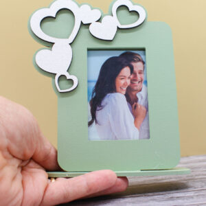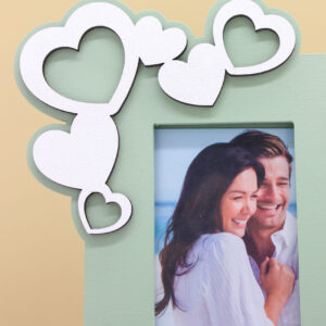 Bomboniera Portafoto Cuori Verde Salvia 13×16 cm