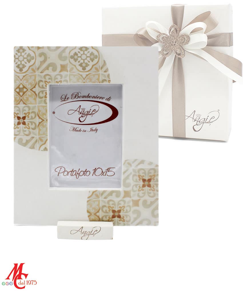 La Bomboniera Portafoto tema Maioliche ti permette di conservare e mostrare le tue foto più preziose in modo elegante. Questo prodotto è disponibile in due misure per adattarsi alle tue esigenze: il formato piccolo è perfetto per le foto più intime, mentre il formato grande offre uno spazio più ampio per le immagini più grandi.