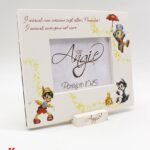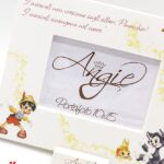 Questa bomboniera presenta un tema ispirato al personaggio di Pinocchio, con un portafoto incastonato nel design. È perfetta per conservare e mostrare le foto più care, aggiungendo un tocco di dolcezza e fantasia all’ambiente.