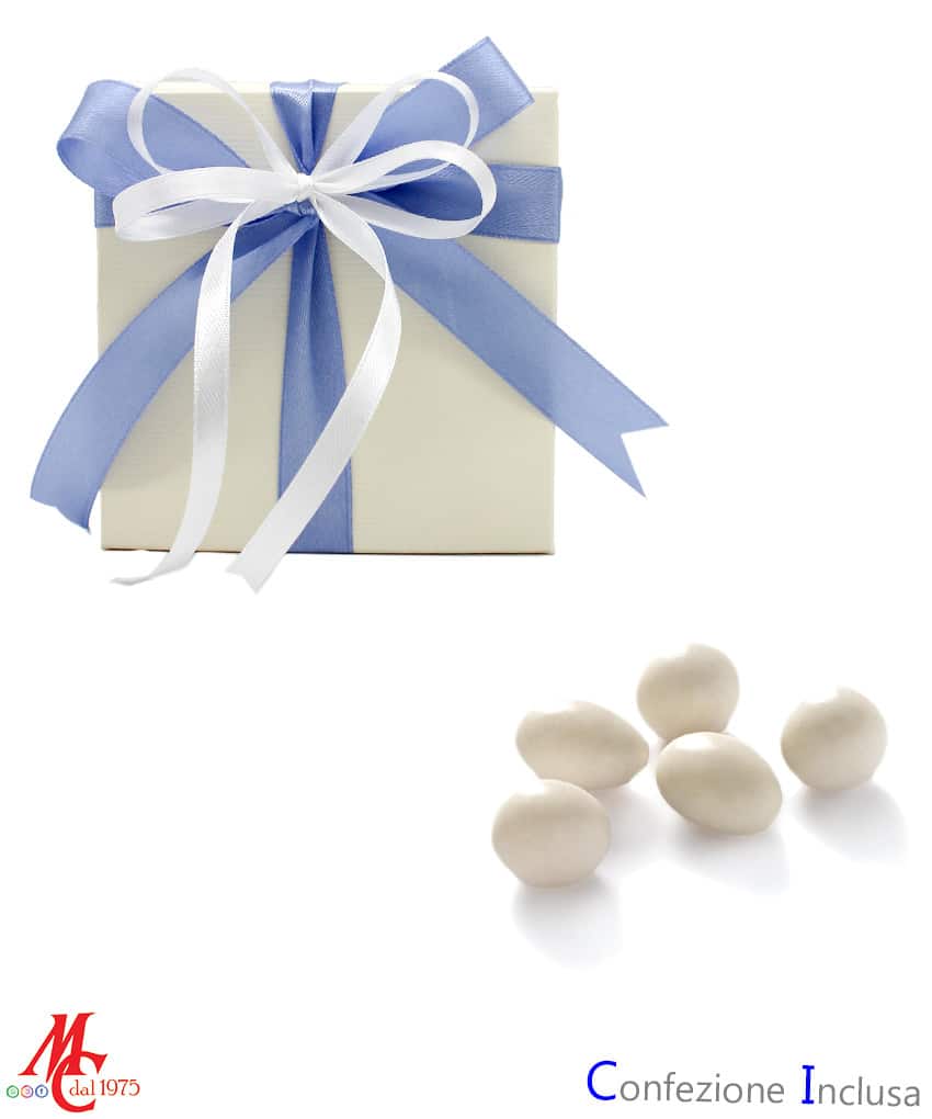 - 5 confetti Bianchi al Cioccolato inseriti in tulle con nastrino di raso ( stesso colore confezione esterna)