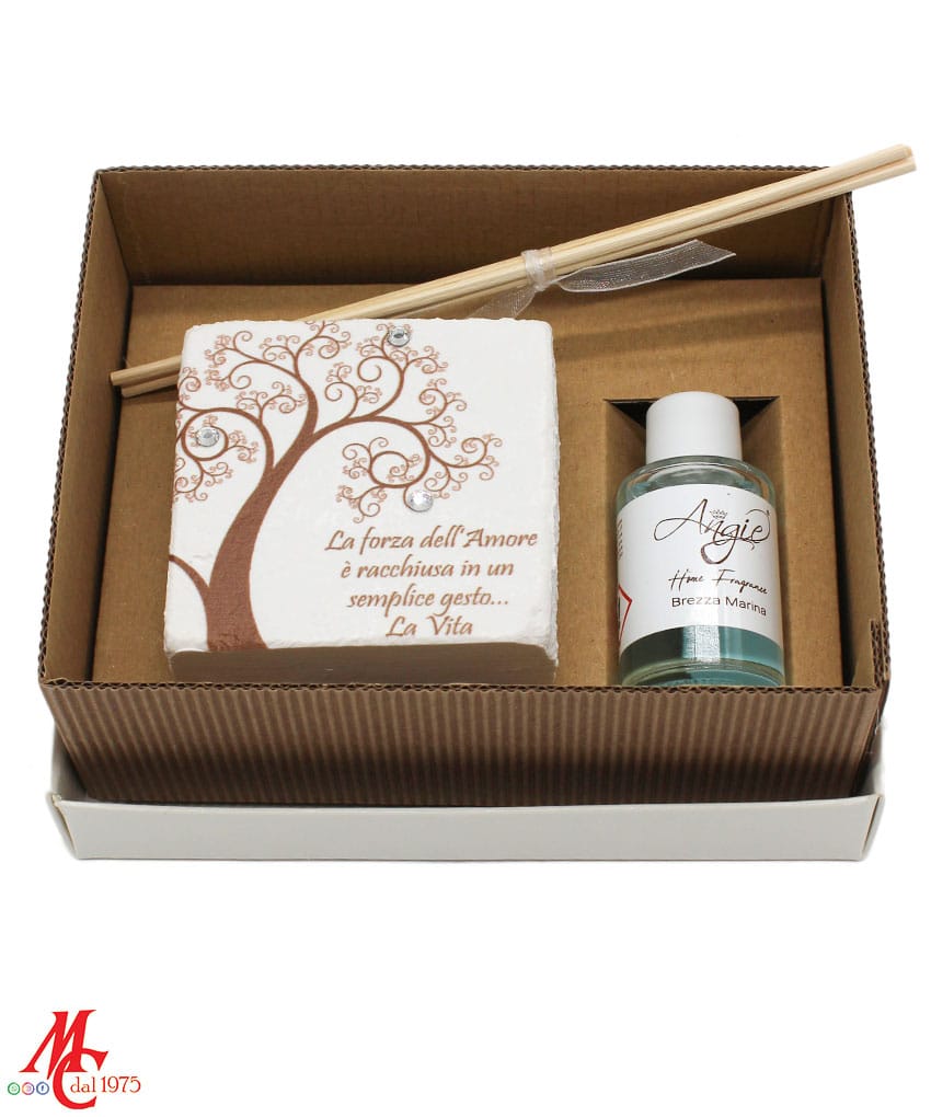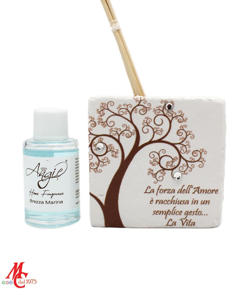 Prodotto completo con essenza profumata e bastoncini diffusori