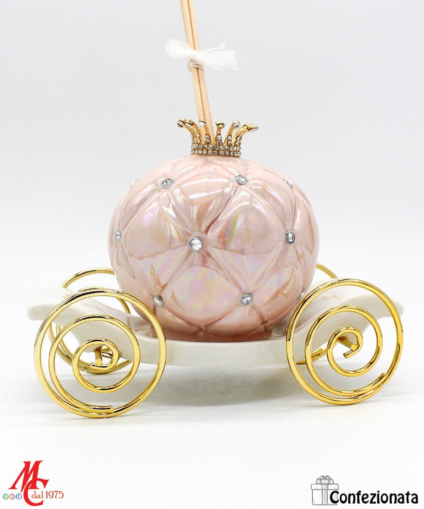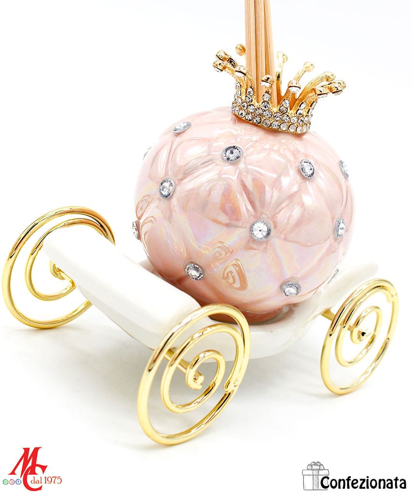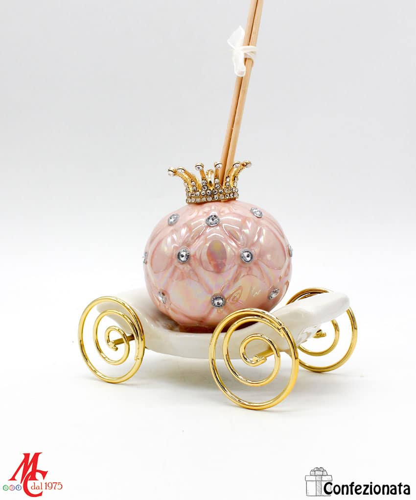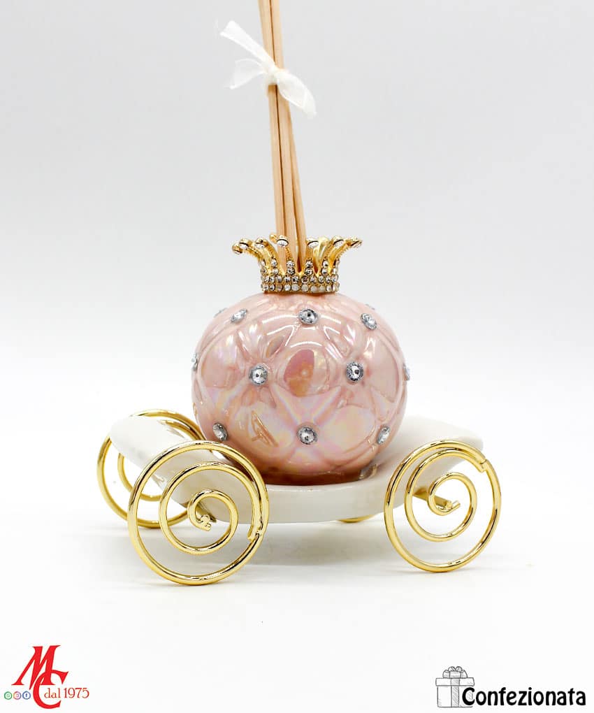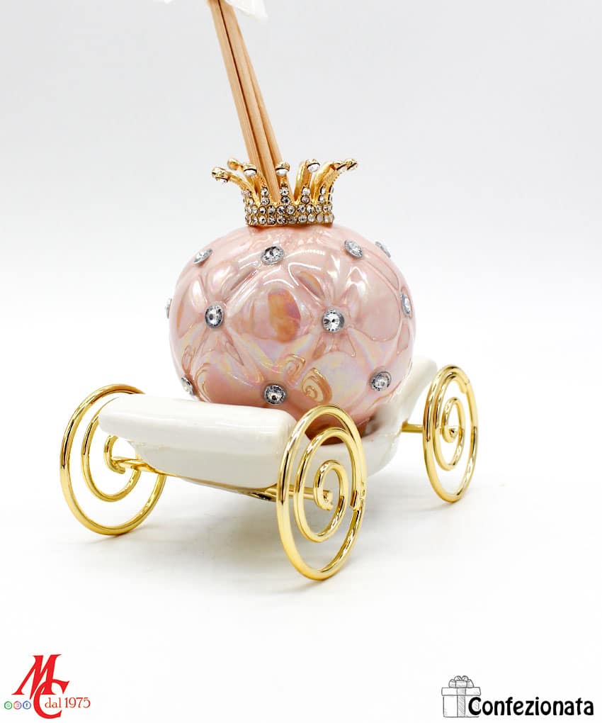 Bomboniera Completa di Confezione – Profumatore Carrozza con Strass – Rosa