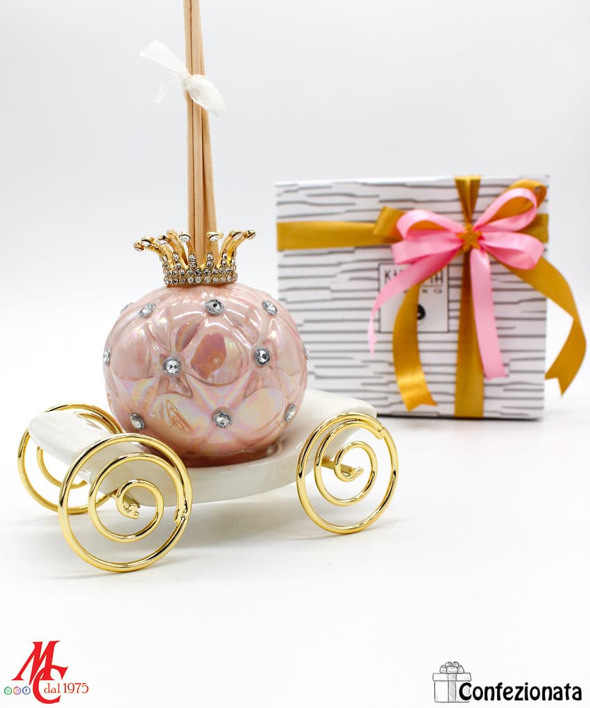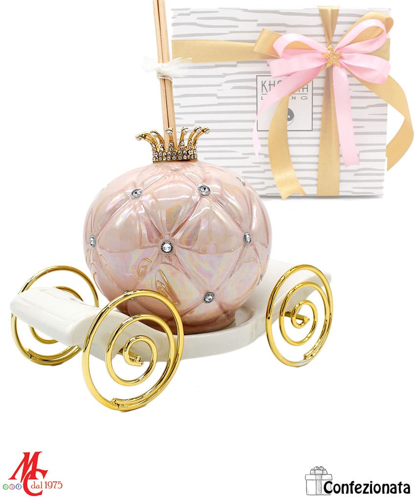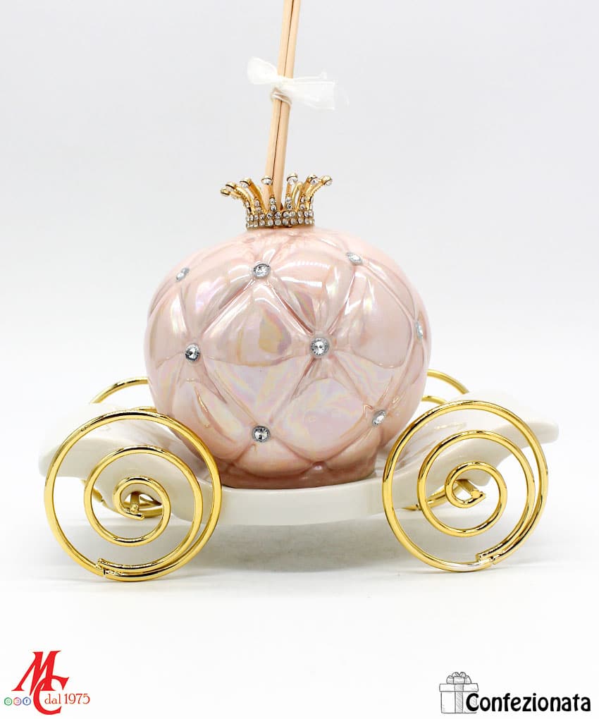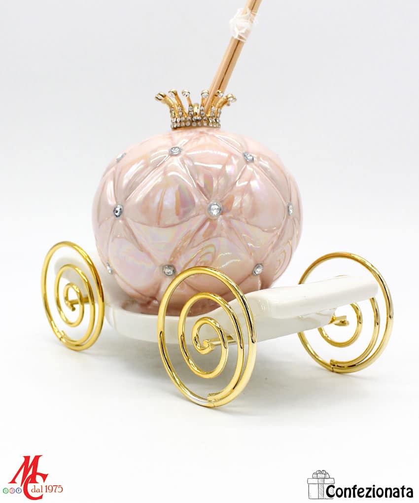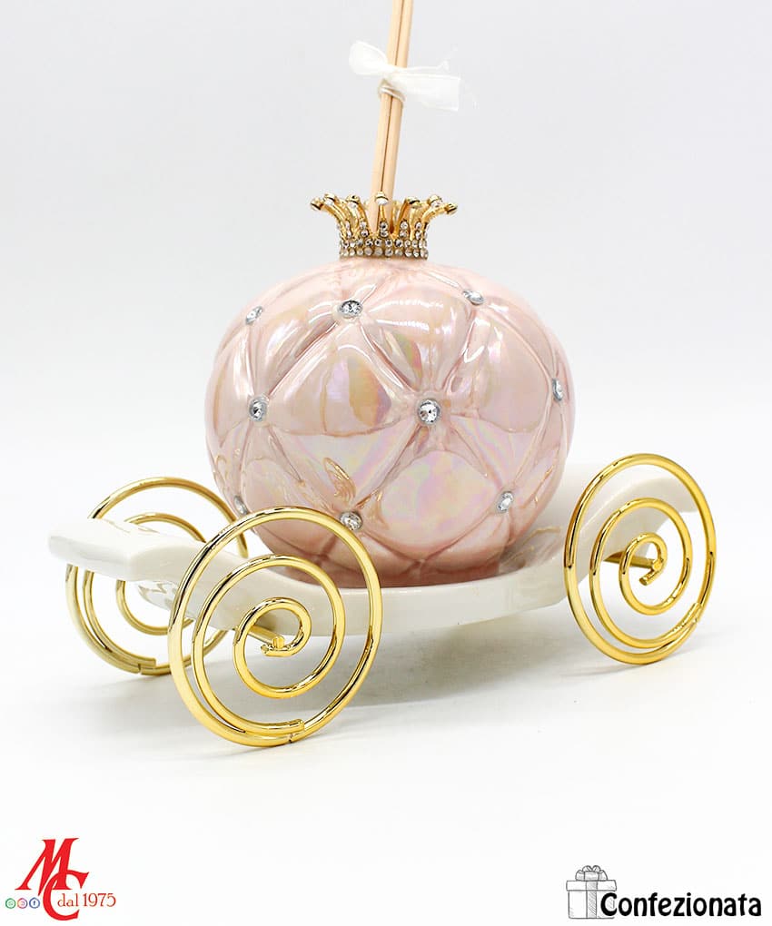 Bomboniera Completa di Confezione – Profumatore Carrozza con Strass – Rosa