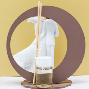 Realizzato in legno intagliato al laser, questo profumatore si distingue per la cura dei dettagli e per la raffinata finitura color fango, una tonalità calda e contemporanea che dona carattere e armonia a qualsiasi ambiente. Le dimensioni di 14 × 15 cm lo rendono un complemento d’arredo equilibrato, ideale per essere esposto come ricordo duraturo dell’evento.