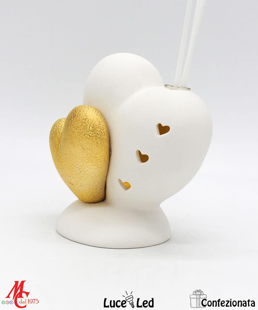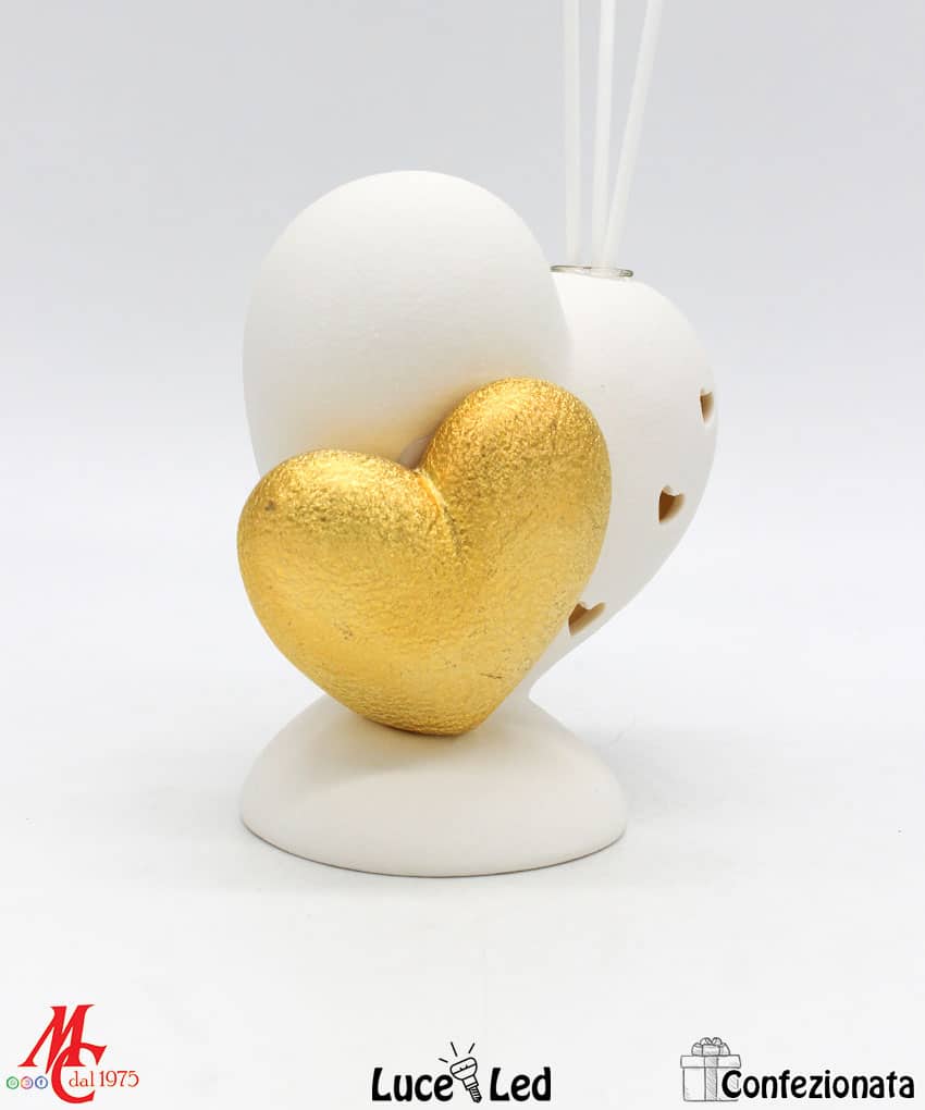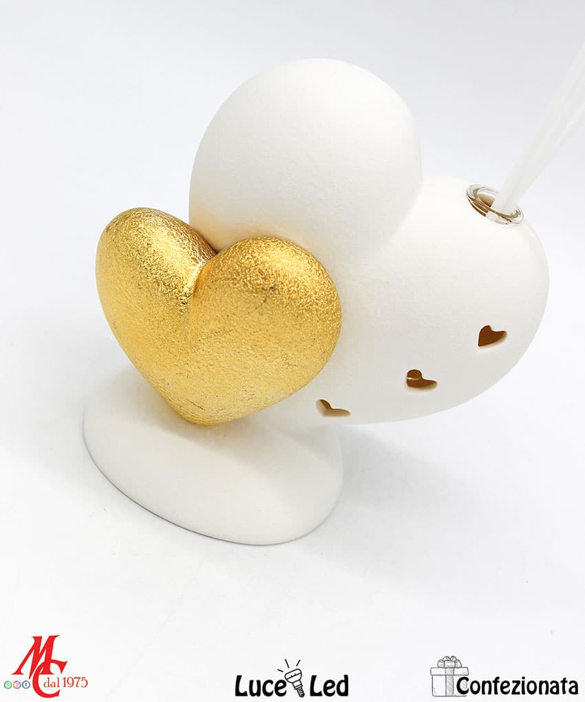 Bomboniera Completa di Confezione – Profumatore Cuore Bianco e Oro – Luce Led