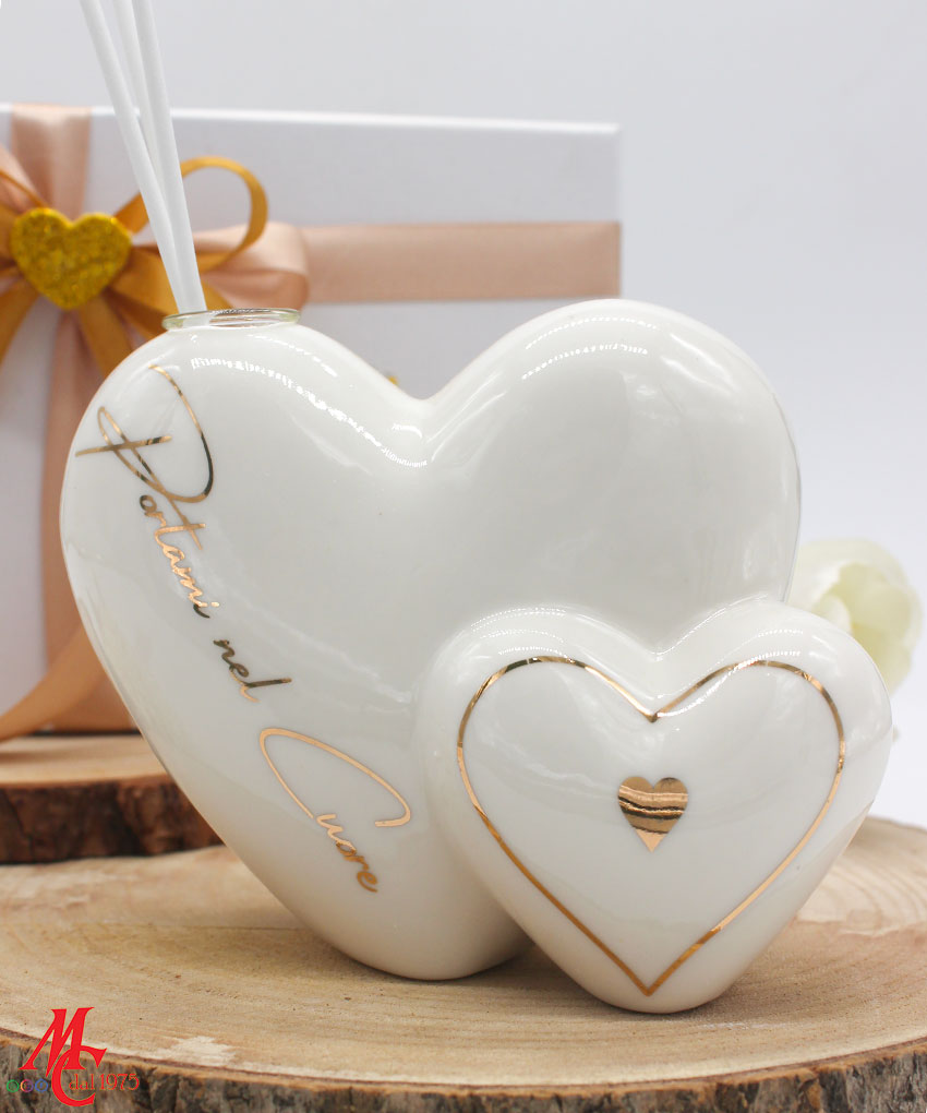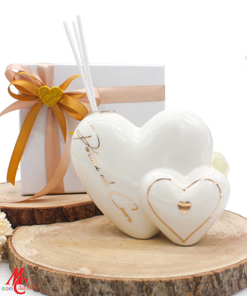 Bomboniera Profumatore Cuore in Porcellana Bianca – Confezione Inclusa