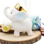 • Design Carino: Il design dell’elefantino con la corona e le oracchie celesti conferisce un tocco di grazia e magia a questa bomboniera, che sicuramente sarà apprezzata da tutti gli ospiti.
