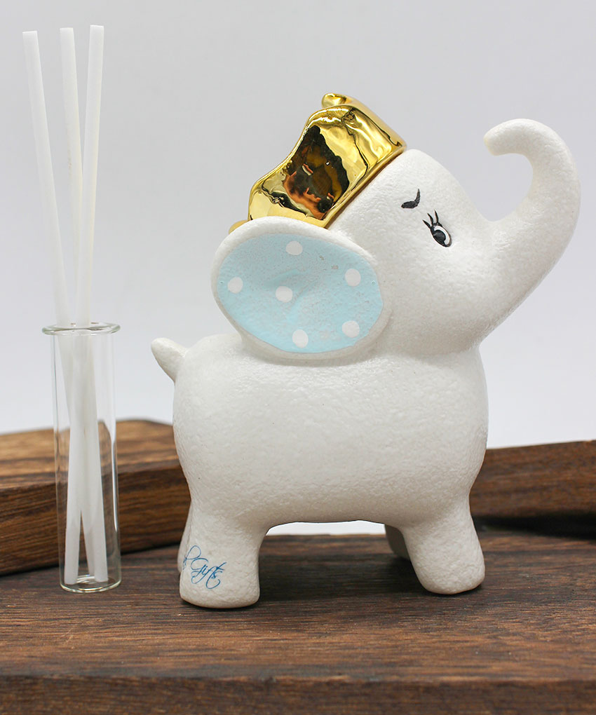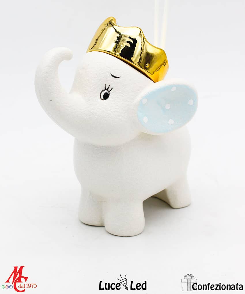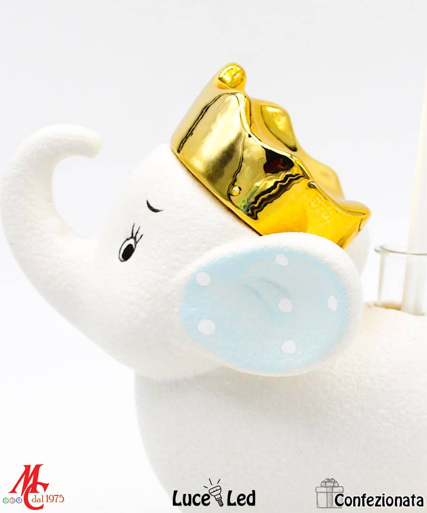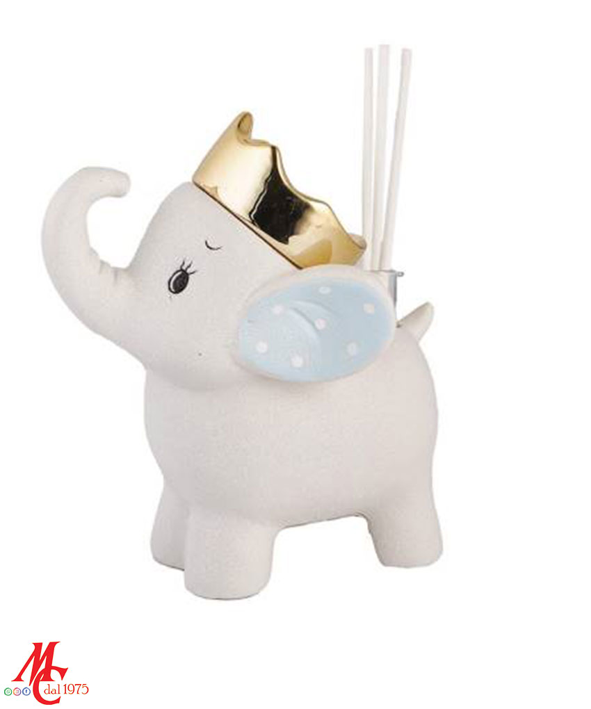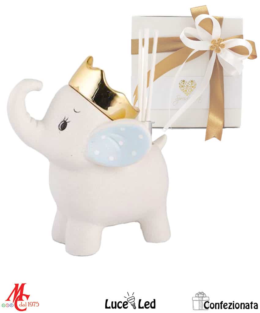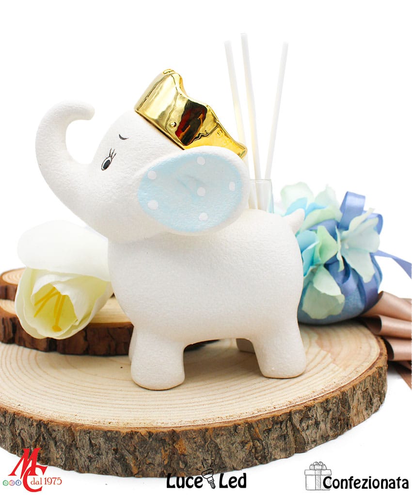 • Modello: Bomboniera Profumatore Elefantino Crown con LED e Orecchie Celesti