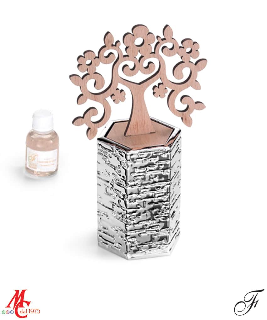 Bomboniera – Profumatore Esagonale Argento con Albero della Vita in Legno