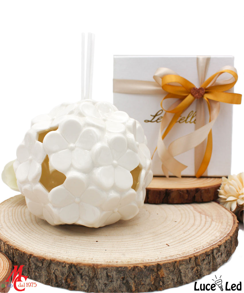 Bomboniera Profumatore Fiori in Porcellana con Luce LED